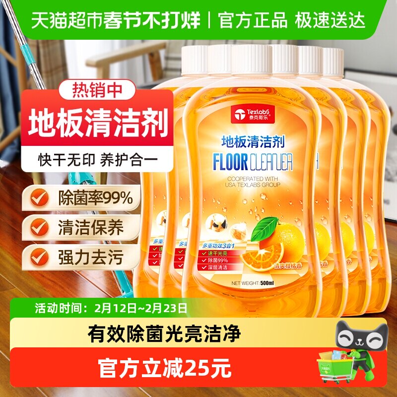 📚 泰克斯乐地板清洁剂瓷砖木地板大理石速干光亮除菌6瓶多效拖地液