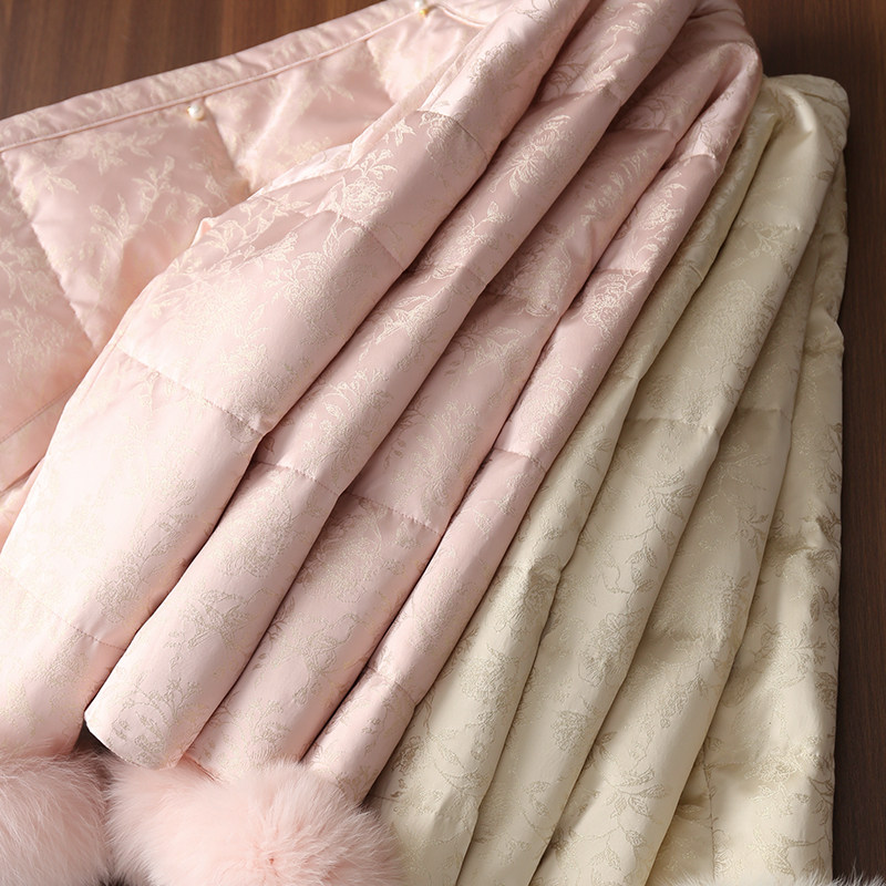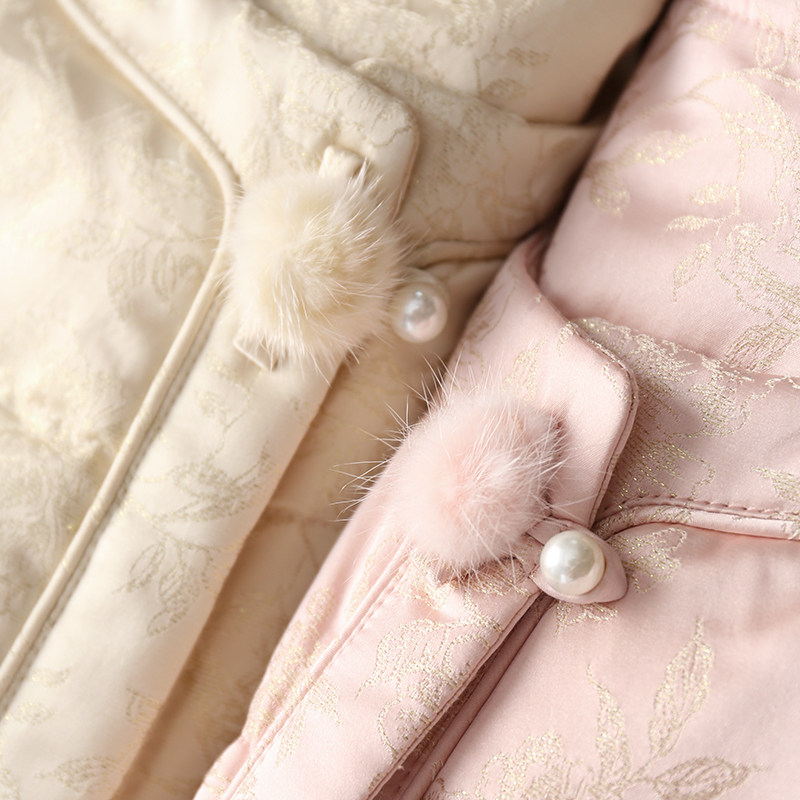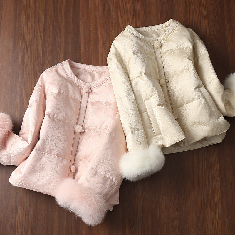 📚 淘么淘 奢线篙端国潮!亮丝提花新中式袖口拼狐狸毛羽绒服外套女