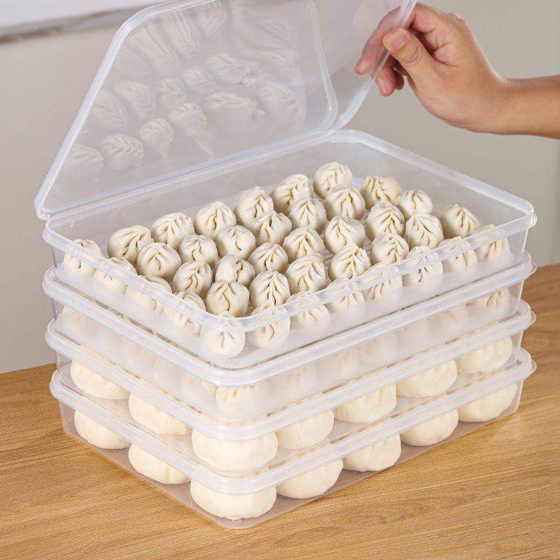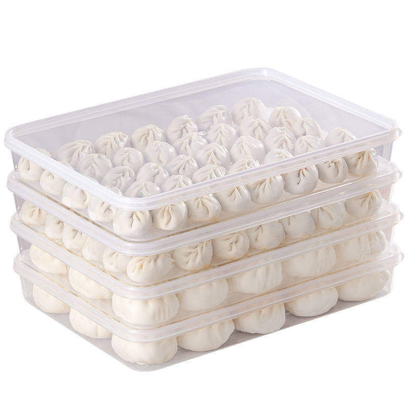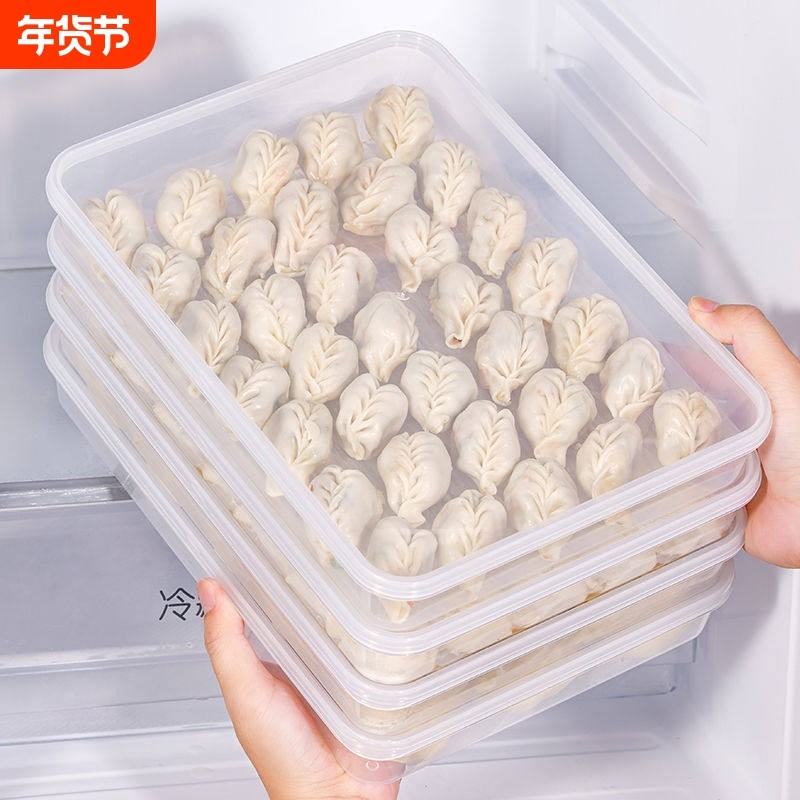 📚 冷冻饺子盒带盖家用冰箱冷藏水饺收纳盒包子食品长方形保鲜盒透明