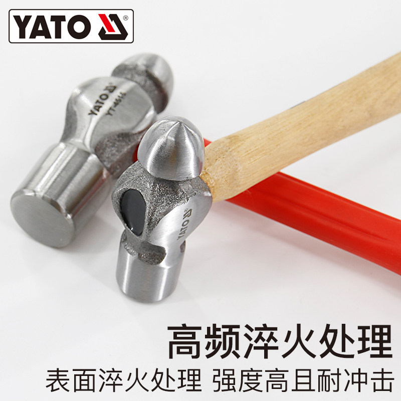 📚 YATO榔头木柄铁锤圆头锤子奶头圆锤奶子锤工具砸核桃小锤子手锤