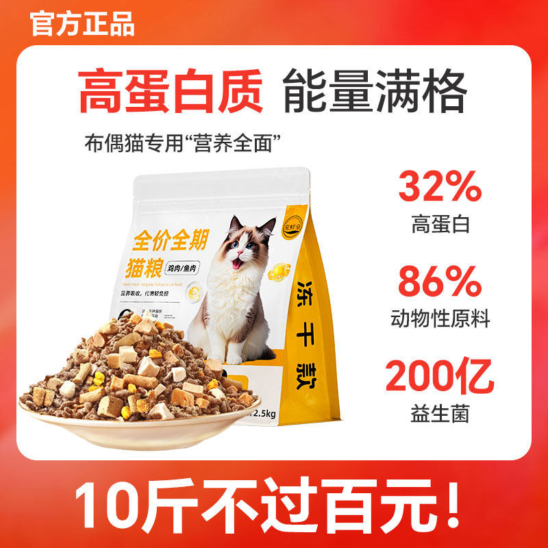 📚 宠鲜皇冻干鲜肉猫粮布偶猫专用营养增肥成猫幼猫通用全价天然粮