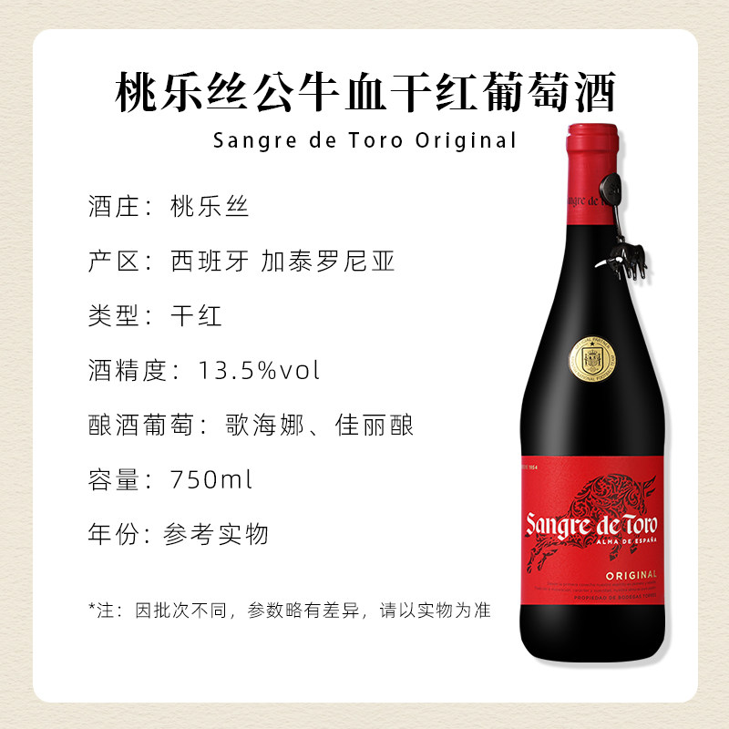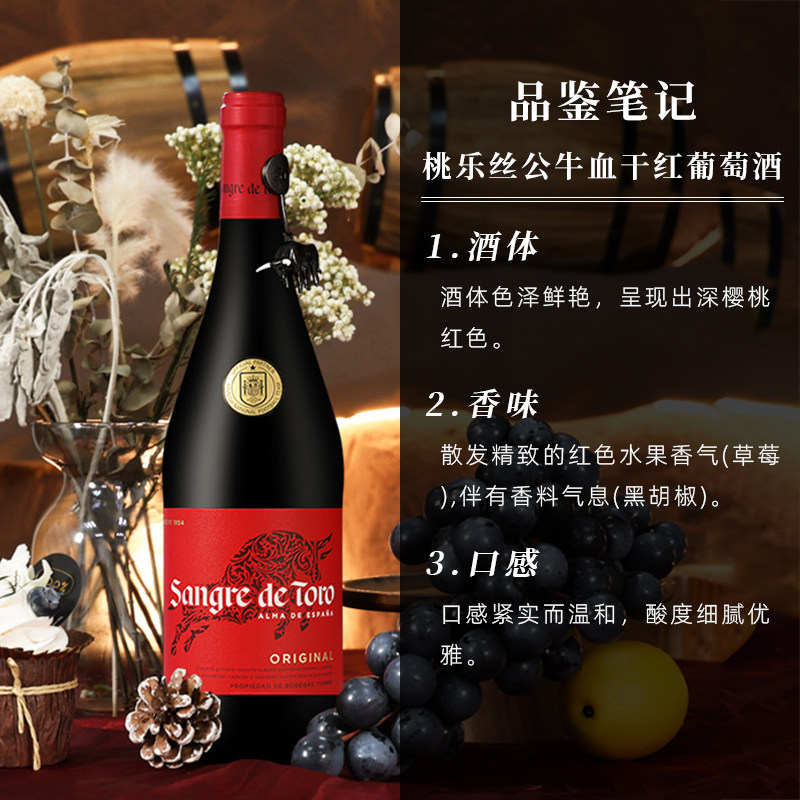 📚 西班牙TORRES桃乐丝公牛血经典干红葡萄酒热红酒法定产区酒DO级