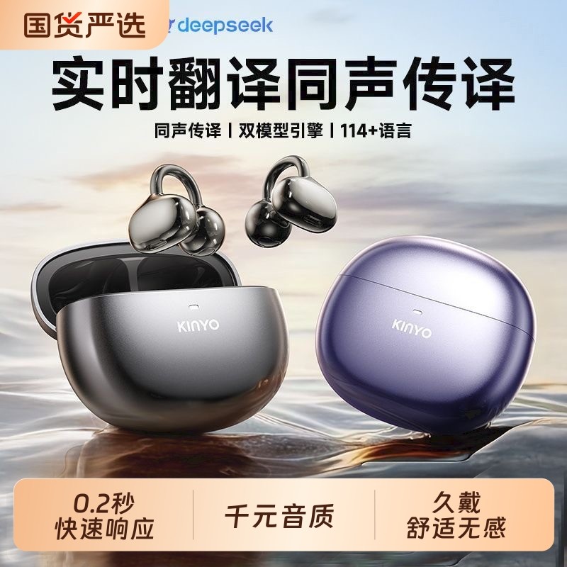 📚 金运2025新款蓝牙耳机Ai翻译实时同声传译耳夹无线骨传导政府补贴