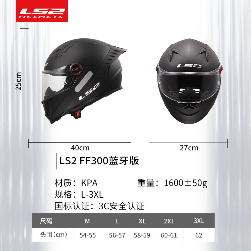 📚 LS2摩托车头盔男女机车大尾翼全盔防雾带蓝牙耳机四季通用FF300