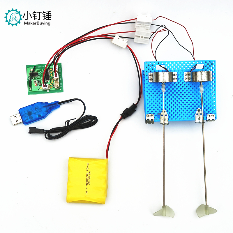 📚 四通道遥控拼装船DIY玩具动力套件 4.8v/6v正反双桨两驱科学课制