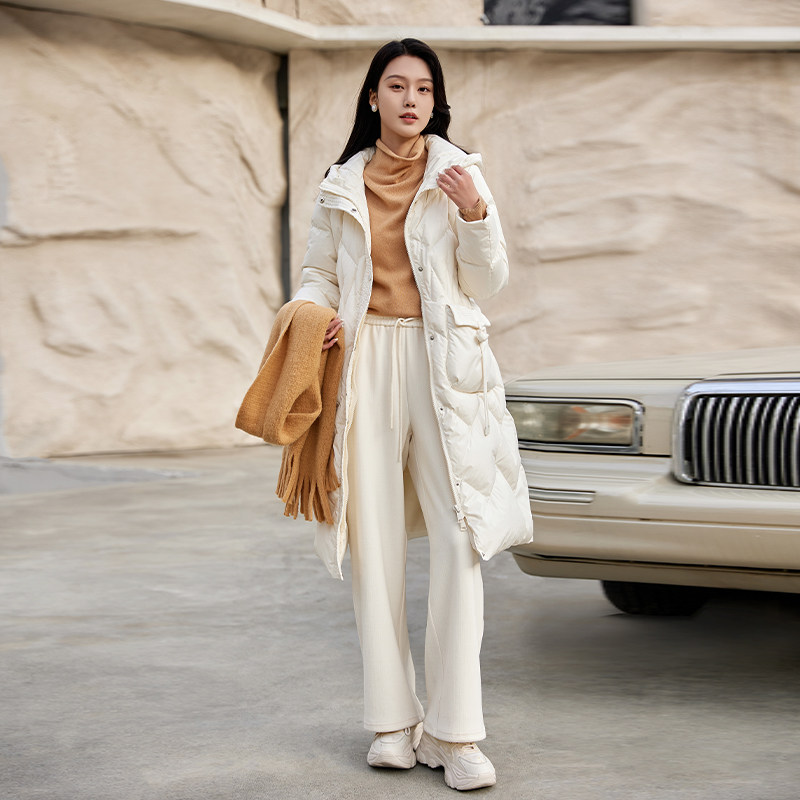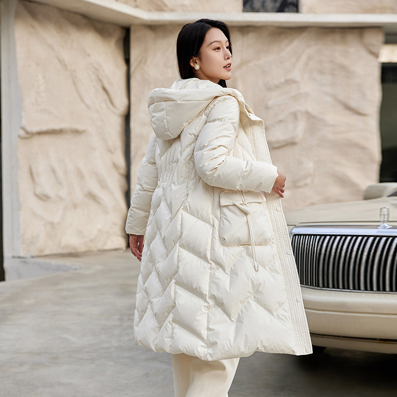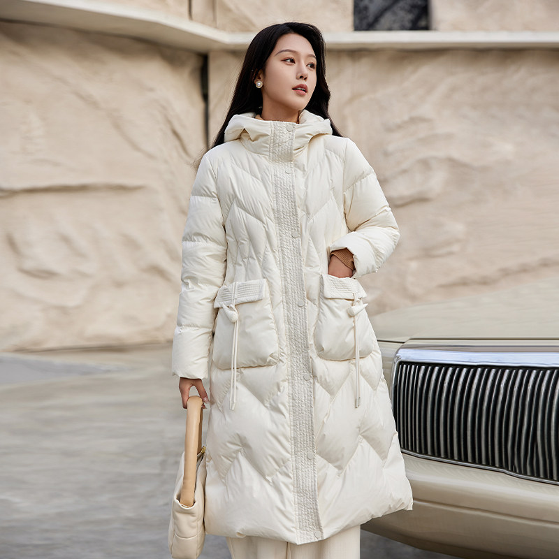 📚 Lucidy/鲁思蒂连帽羽绒服女冬季2024新款长款时尚保暖白鸭绒外套