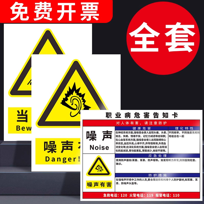 📚 职业病危害告知牌职业卫生警示标识噪声警示牌劳保用品标志注意防尘标识牌噪音有害健康请佩戴安全帽口罩标志