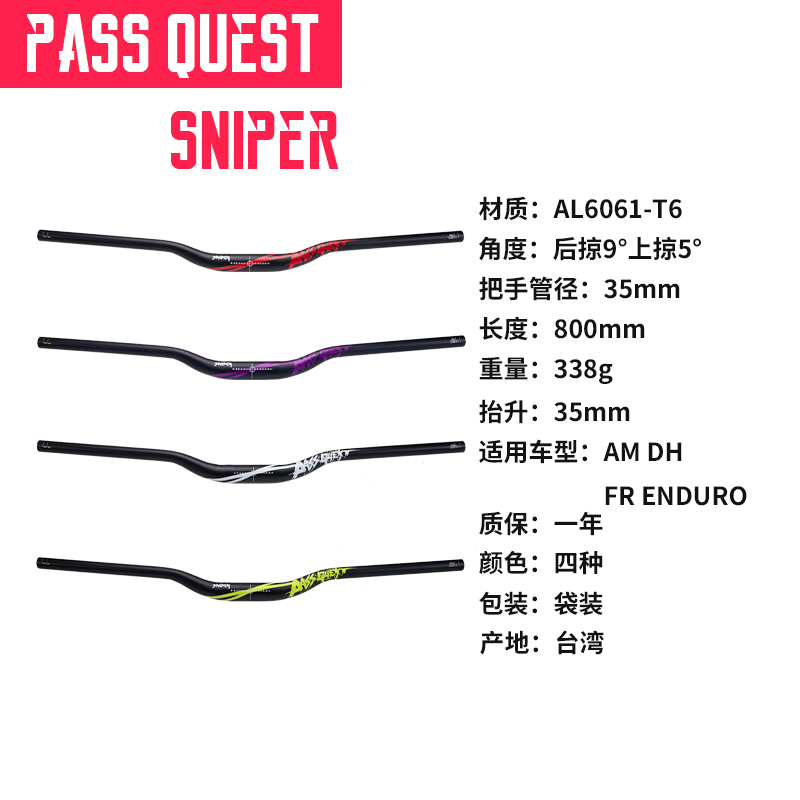 📚 PASS QUEST SNIPER大燕把35抬升35口径AM/DHFR山地车速降把横把立