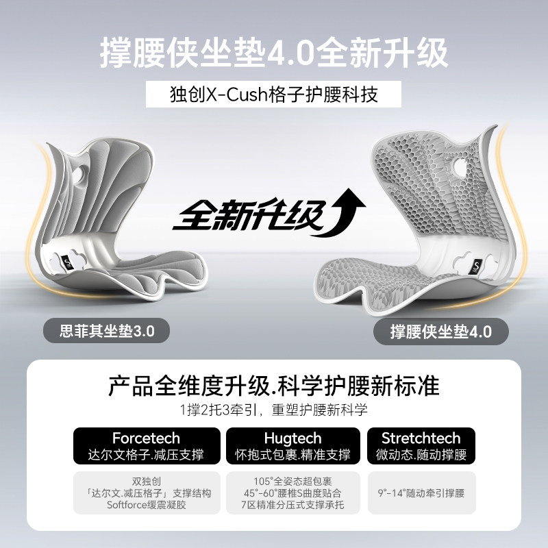 📚 思菲其撑腰侠格子护腰坐垫人体工学神器腰靠久坐不累靠背一体座垫
