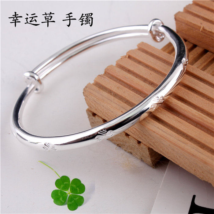 📚 纯银S999幸运四叶草银手镯子女款简约学生森系银饰手环送女友妈妈