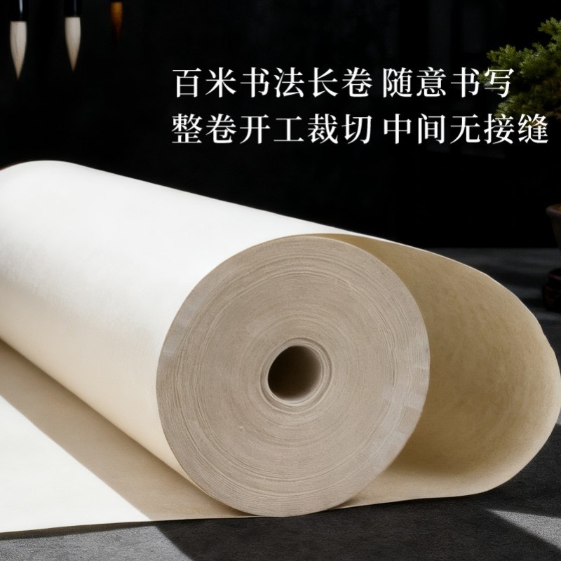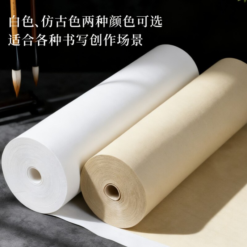 📚 宣纸书法专用长卷半生半熟加厚100米仿古练字卷轴毛笔字软笔中国画白描空白作品纸工笔画美术国展纸半生熟