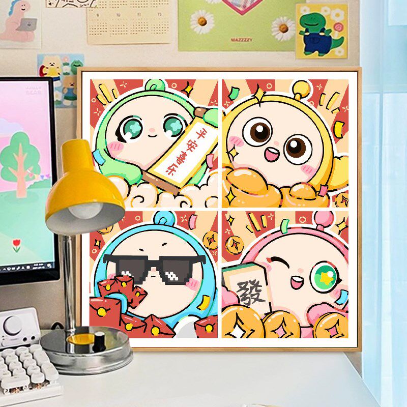 📚 蛋仔派对卡通数字油画diy填充填色手工绘儿童涂鸦丙烯油彩装饰画