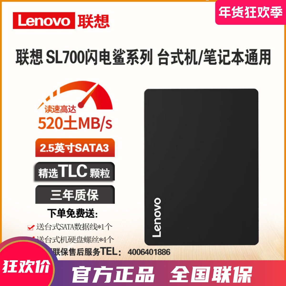 📚 Lenovo/联想 SL700 240G 120G SSD固态硬盘SATA3台式机硬盘笔记本