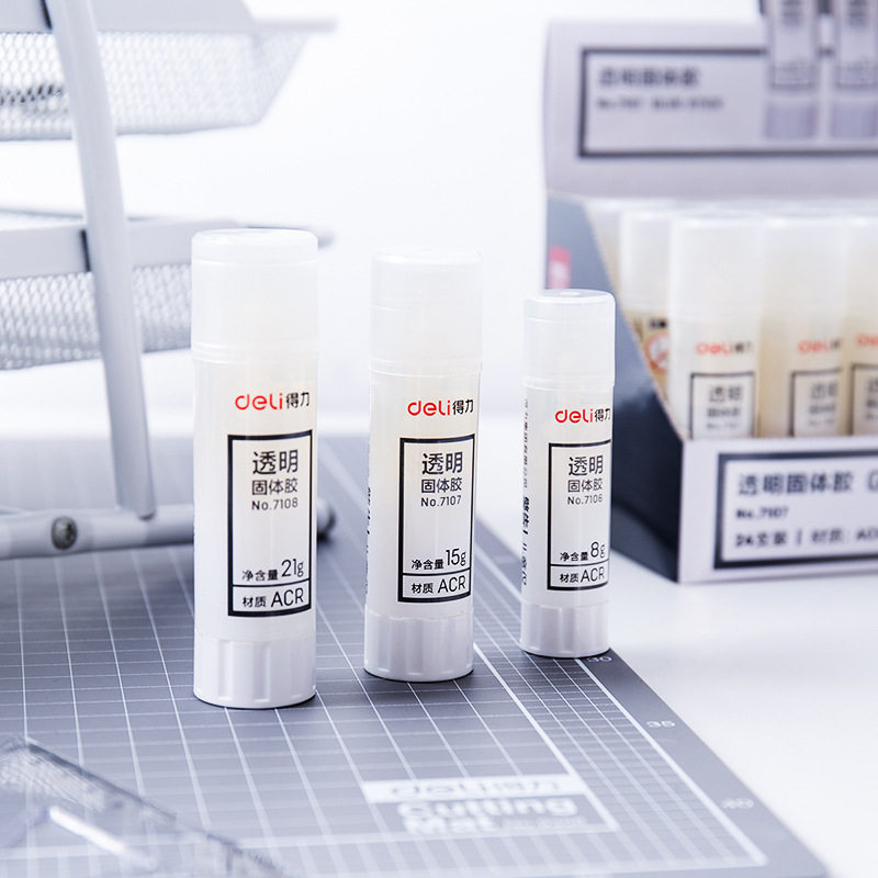 📚 得力透明固体胶棒手工胶ACR材质大中小号儿童透明胶棒办公学生