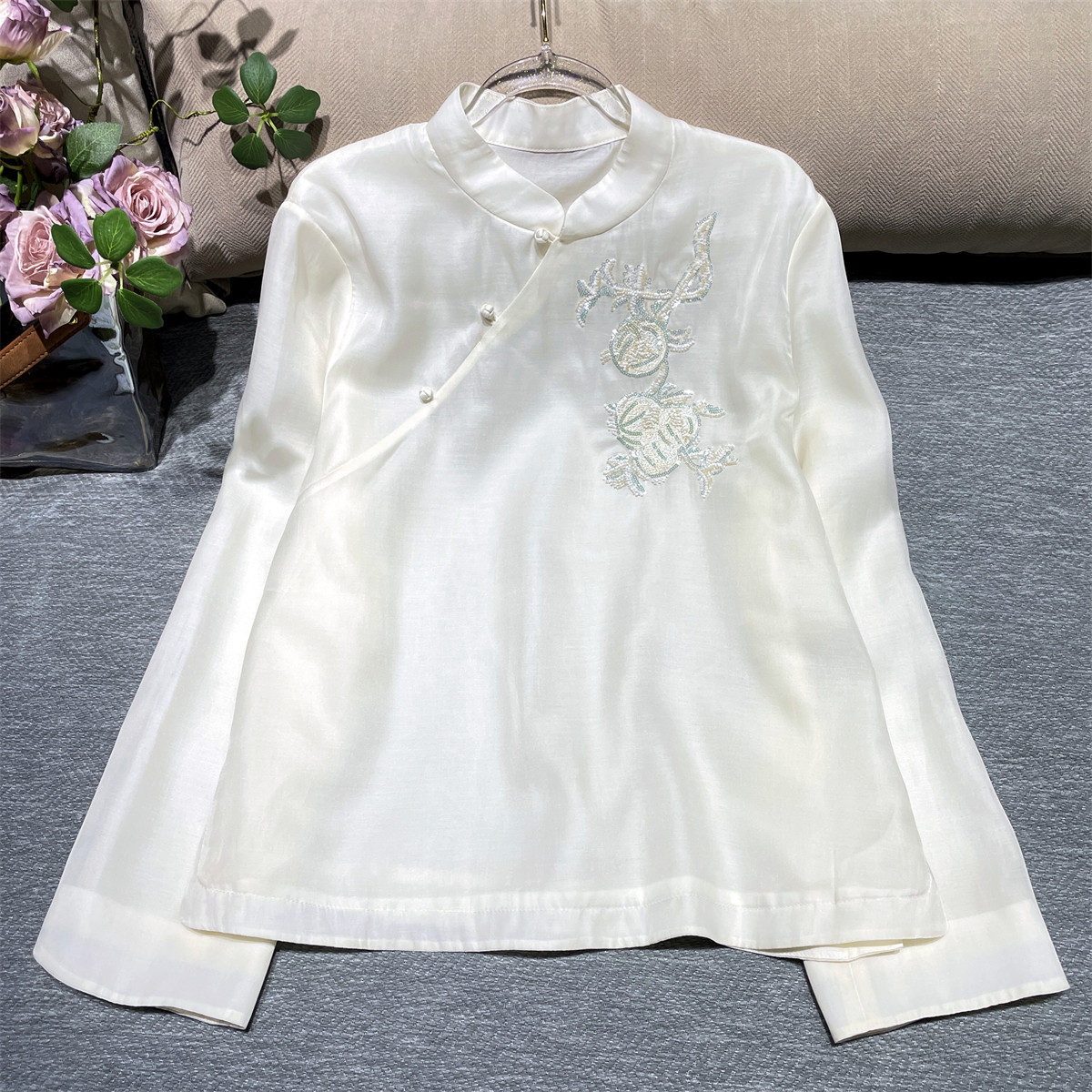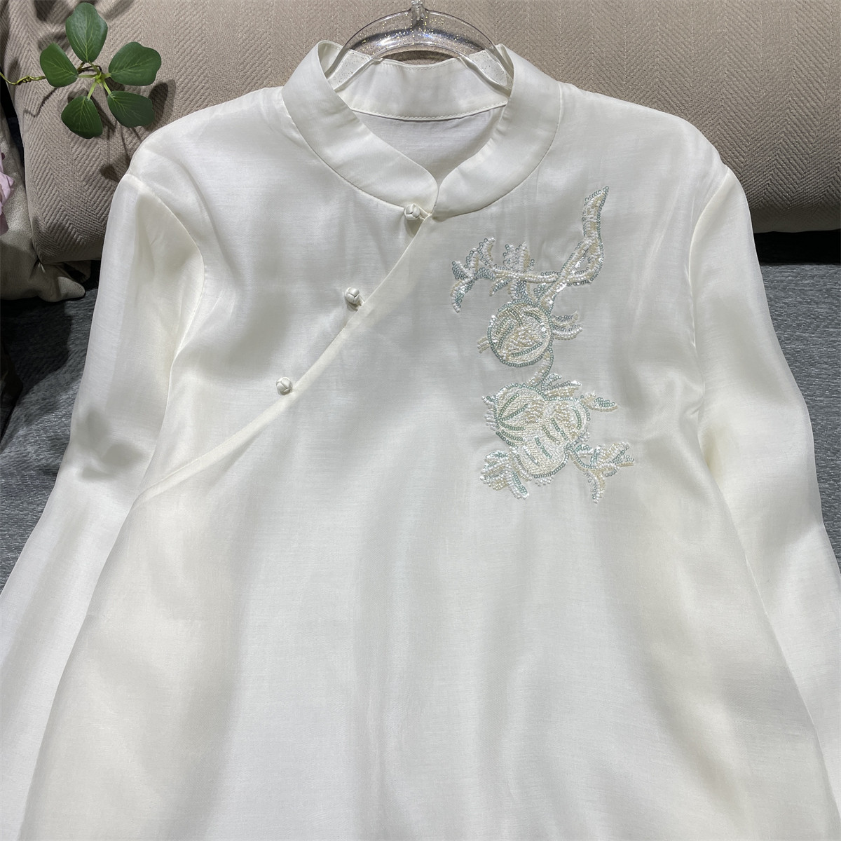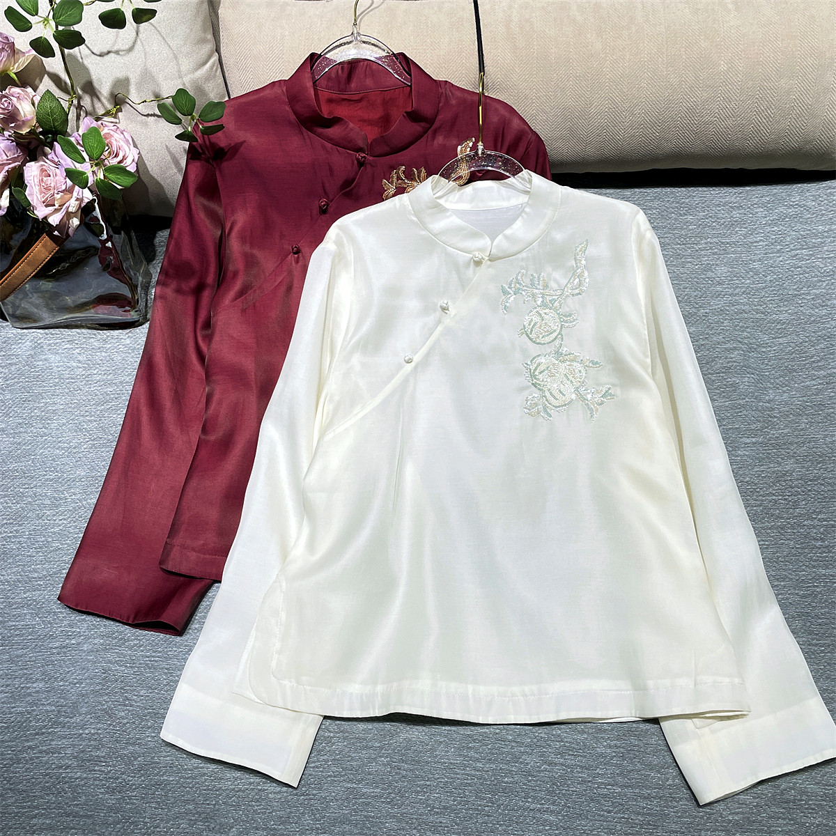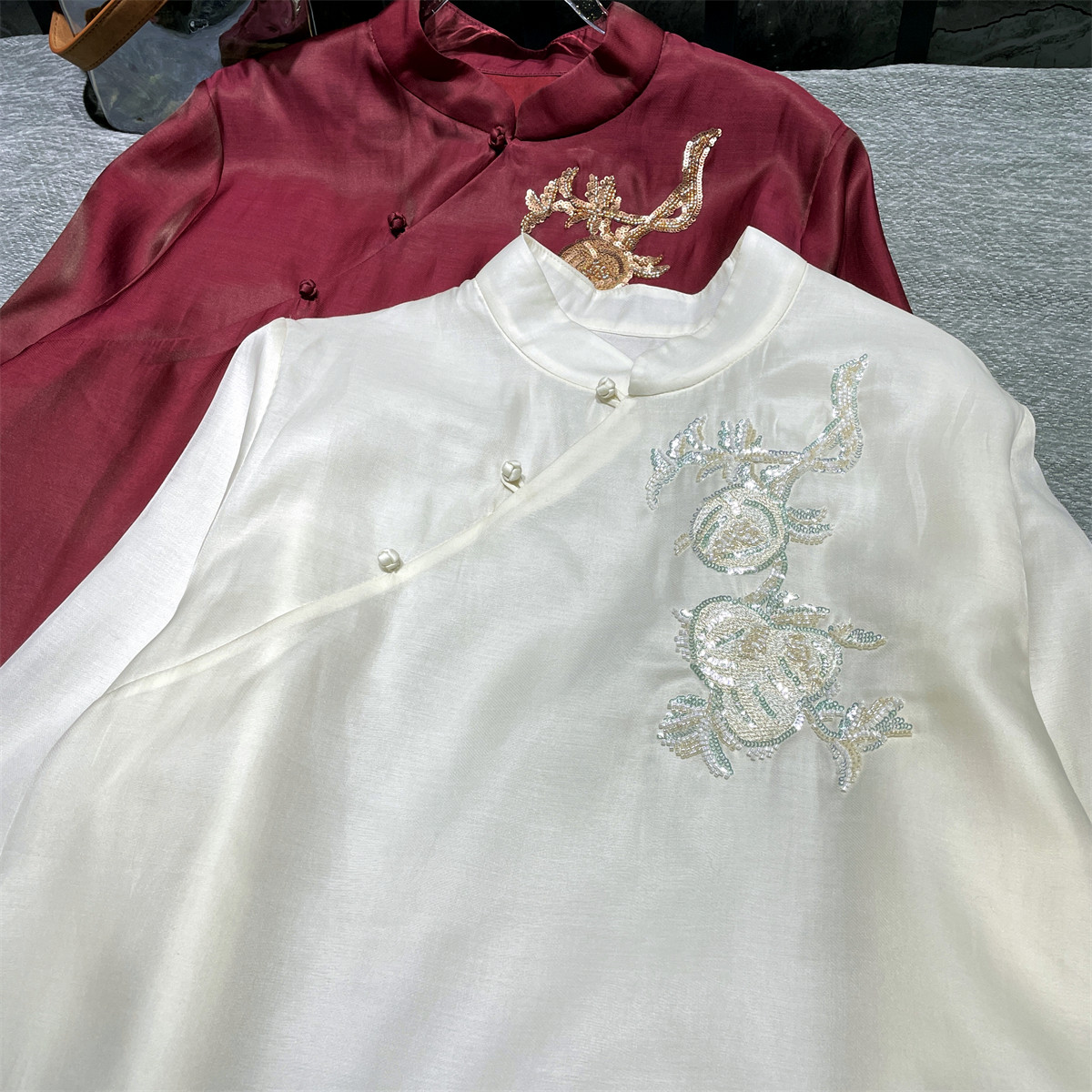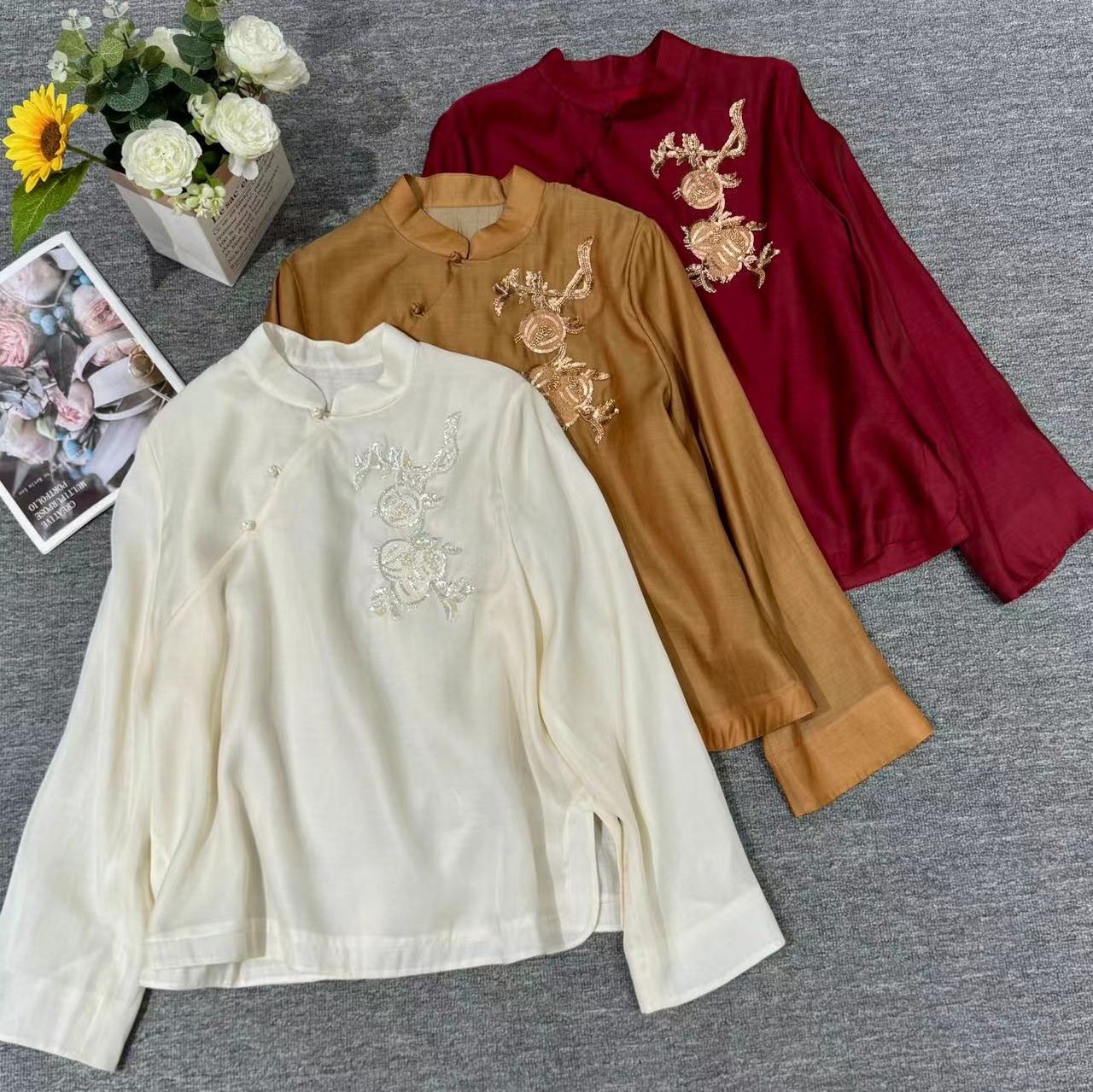 📚 【石来运转】新中式国风真丝重工珠片刺绣高级感纯色百搭衬衫上衣