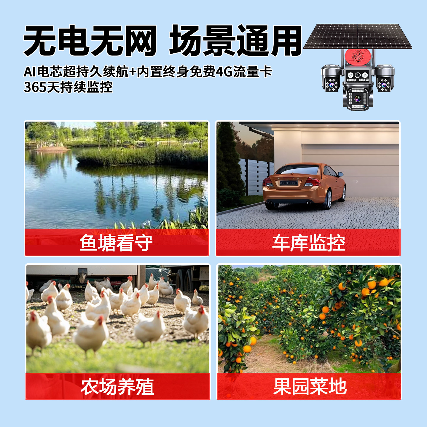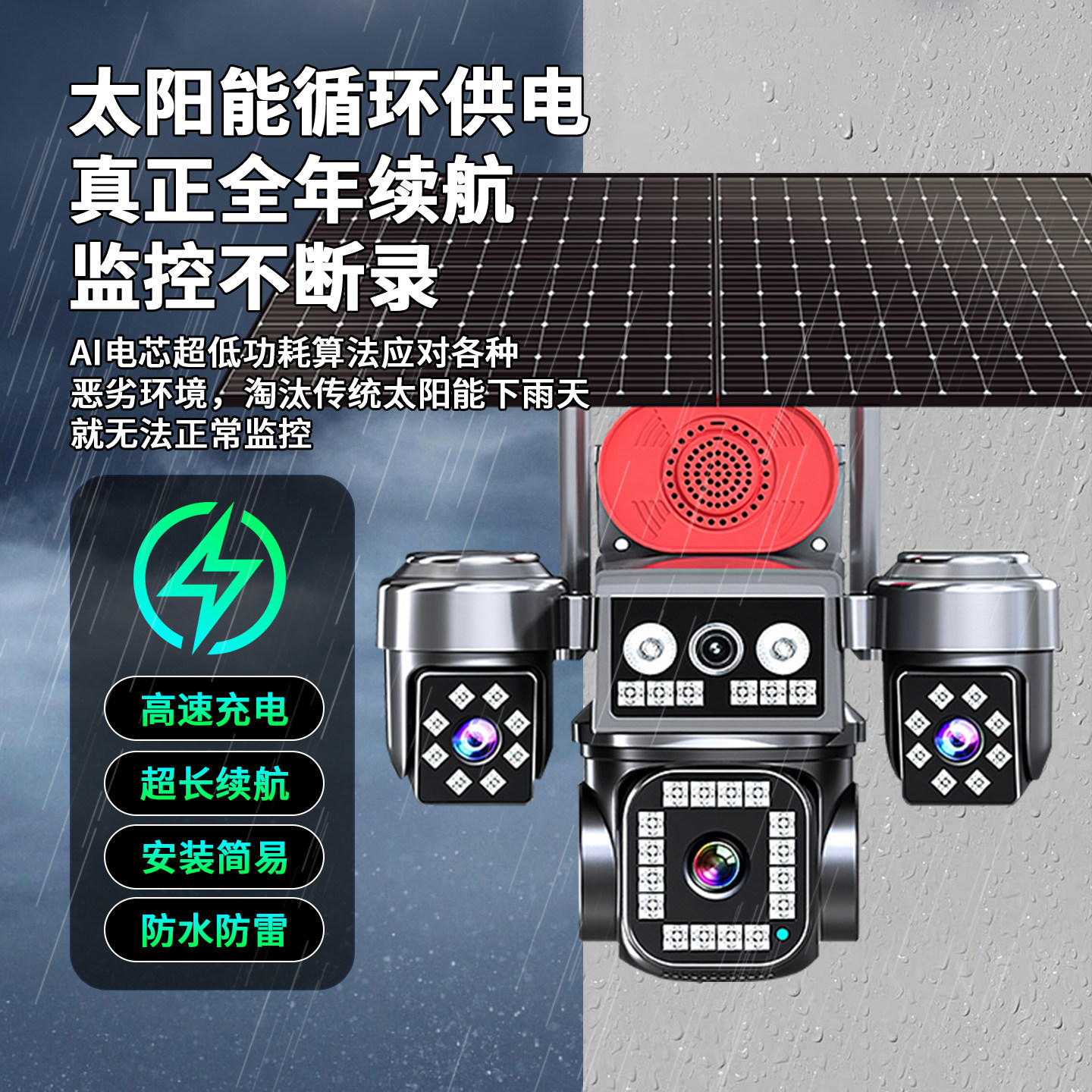 📚 摄像头360度无死角太阳能监控器无需网络高清2000万农村室外防水
