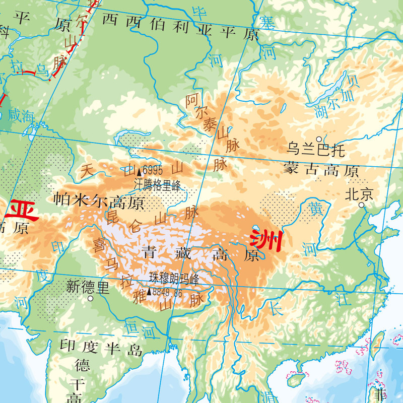 📚 世界地形图地理知识海报地势地貌全图客厅办公室贴画教室文化墙