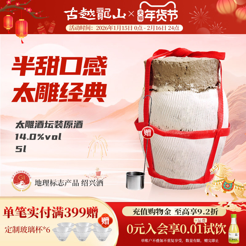 📚 古越龙山绍兴黄酒坛装太雕酒5L甜型善酿大坛酒