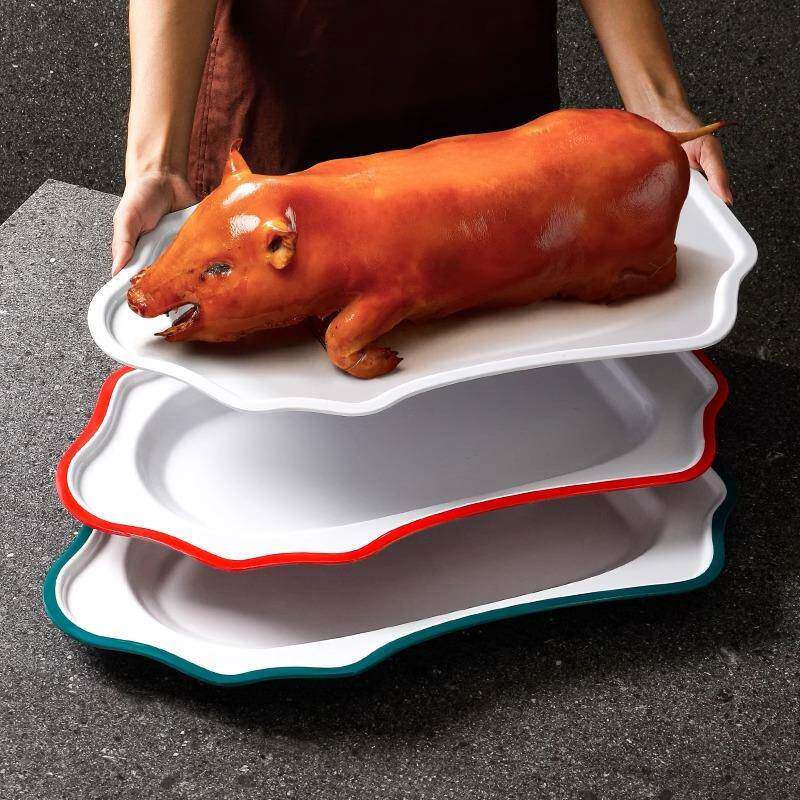 📚 密胺餐具烤乳猪专用托盘商用仿瓷盘配菜盘餐盘异形创意摆盘耐高温
