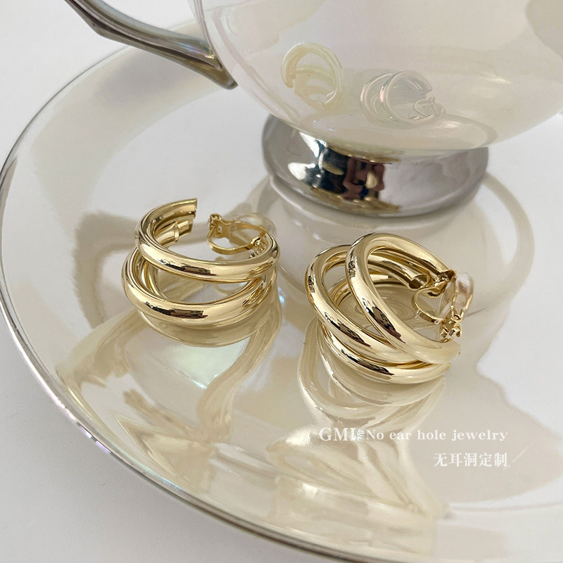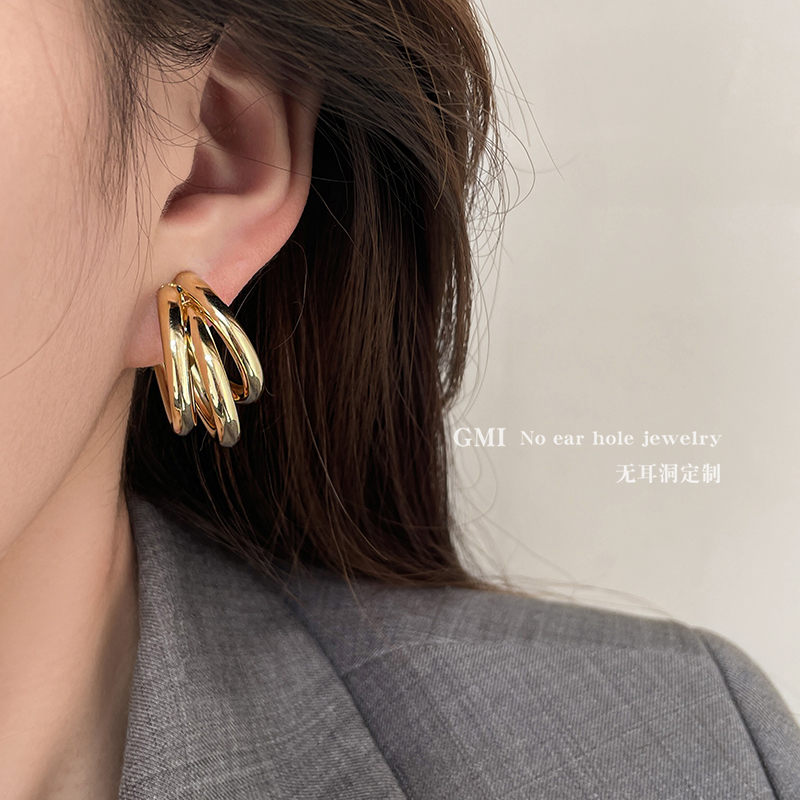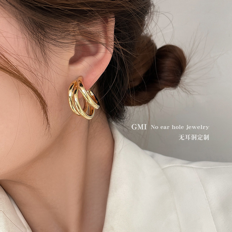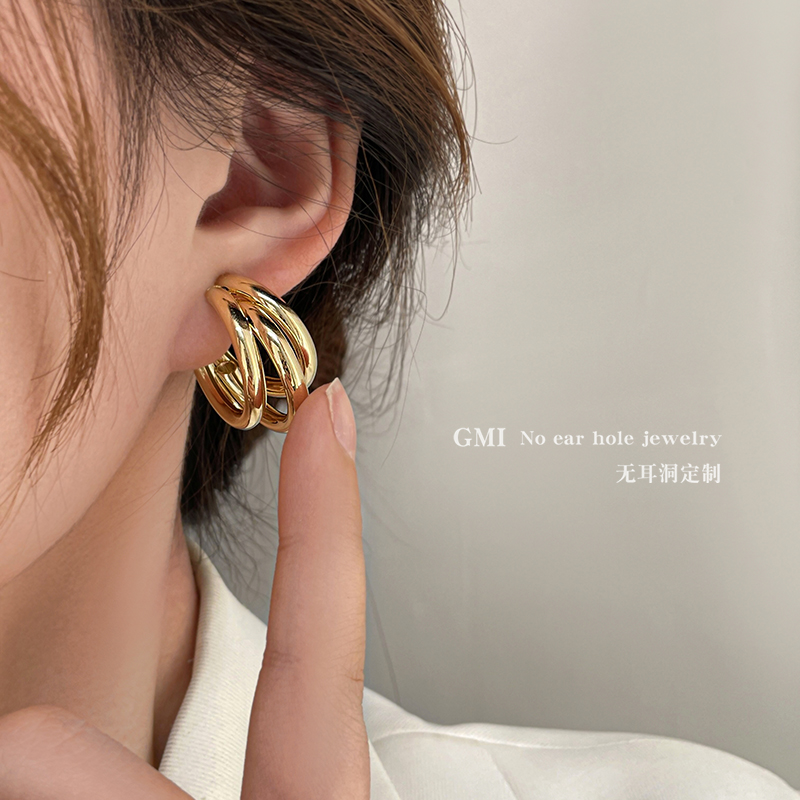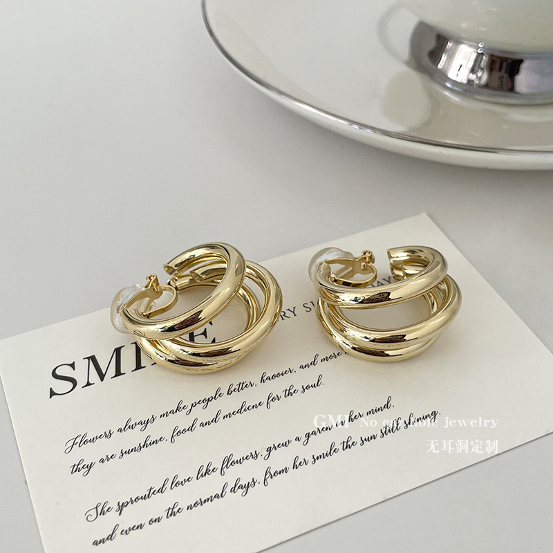 📚 金色圈圈无耳洞耳夹女士2025新款气质耳环轻奢小众高级感独特耳饰