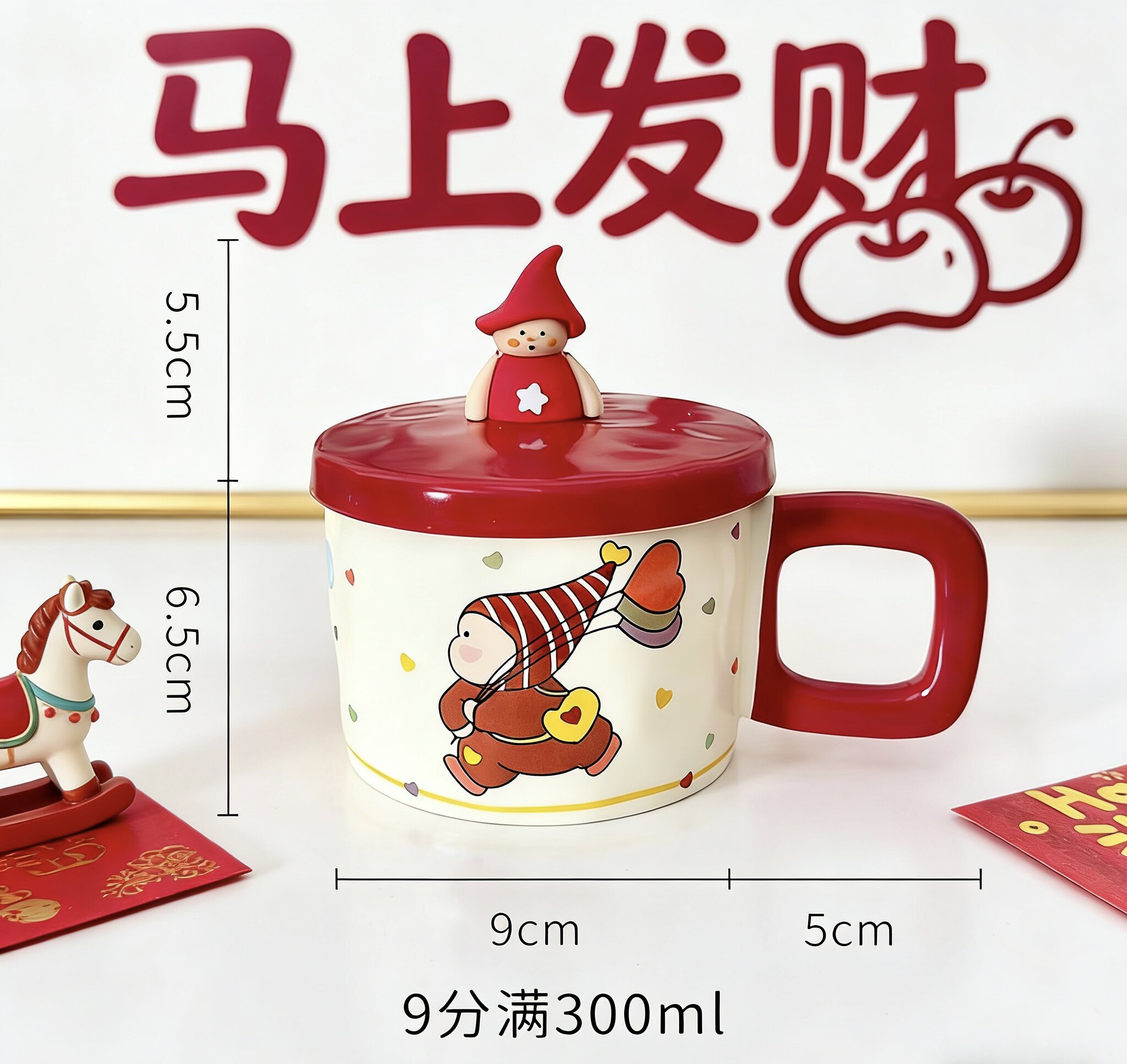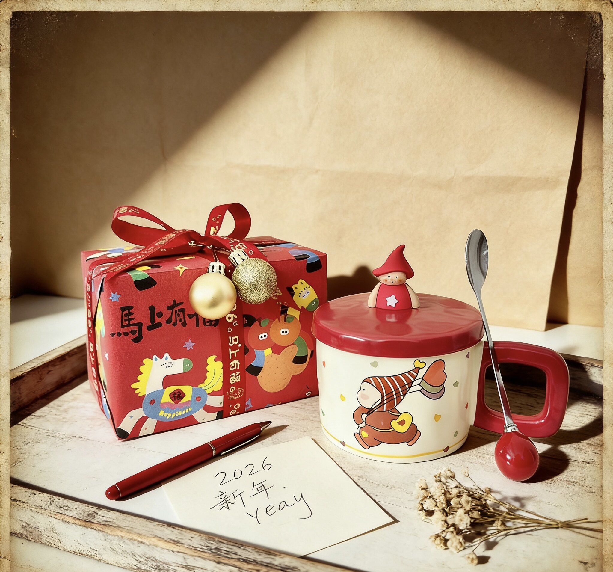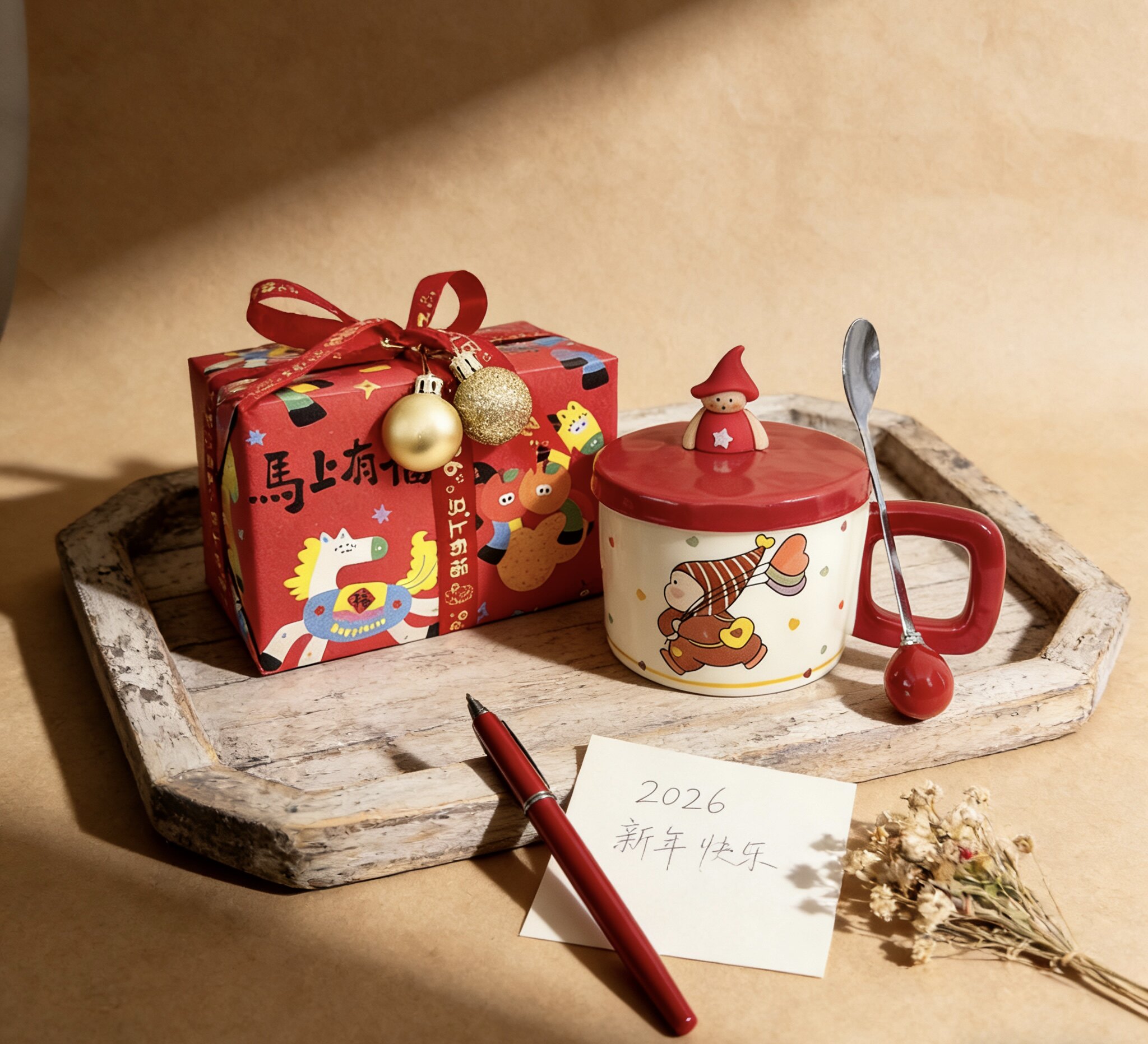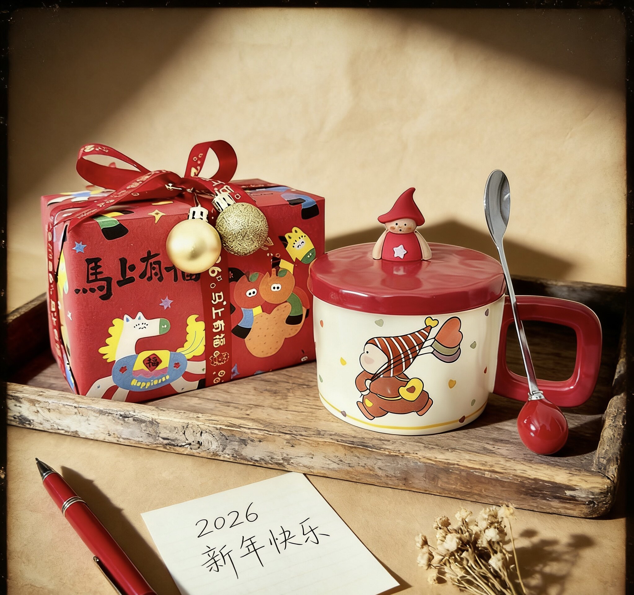 📚 2026新款星星人马克杯礼物送女生闺蜜节日礼物红色马年礼盒带盖