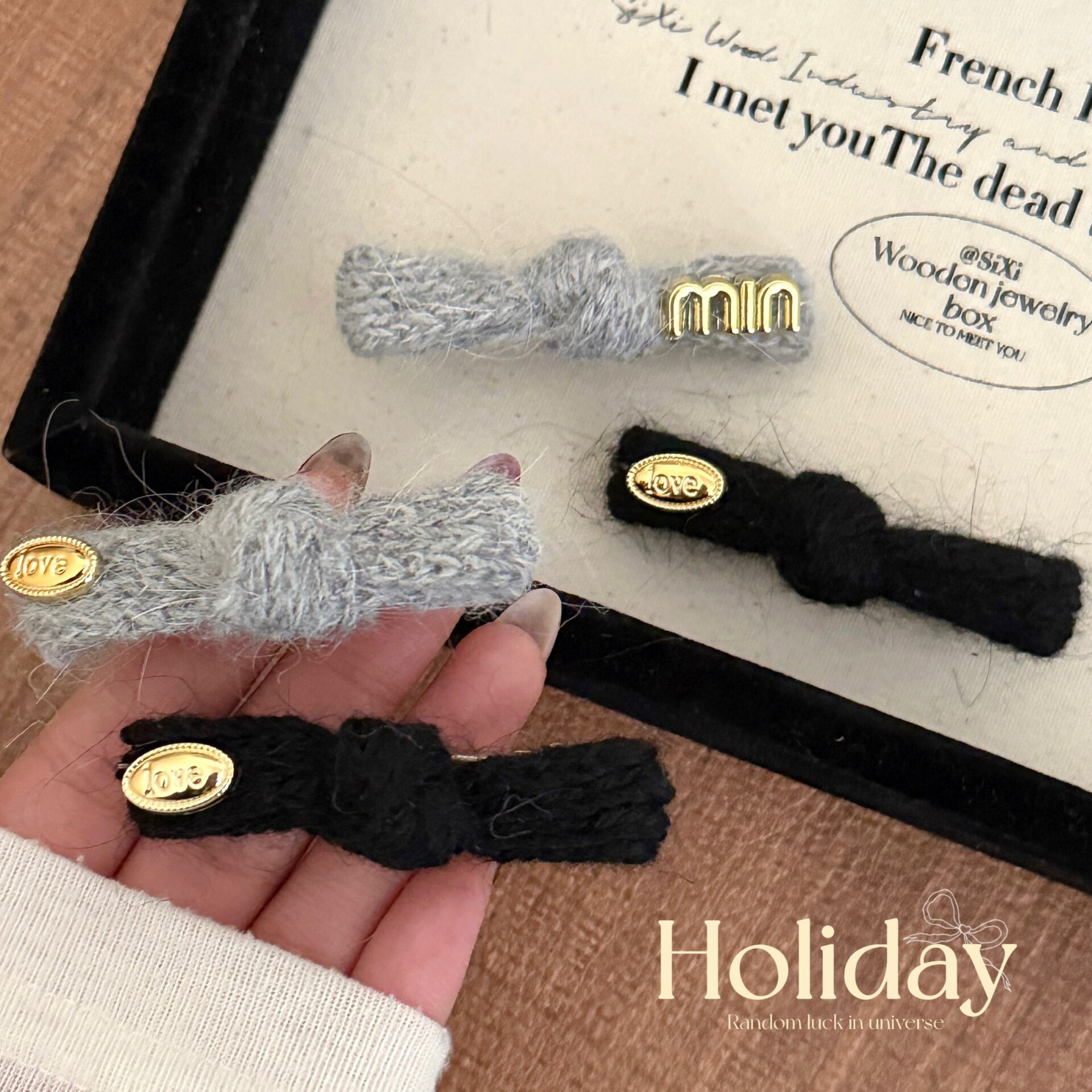 📚 新年小礼物高颜值金标毛绒领结发夹一字夹刘海边夹前额碎发夹