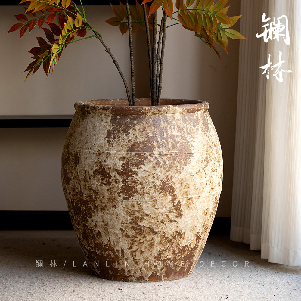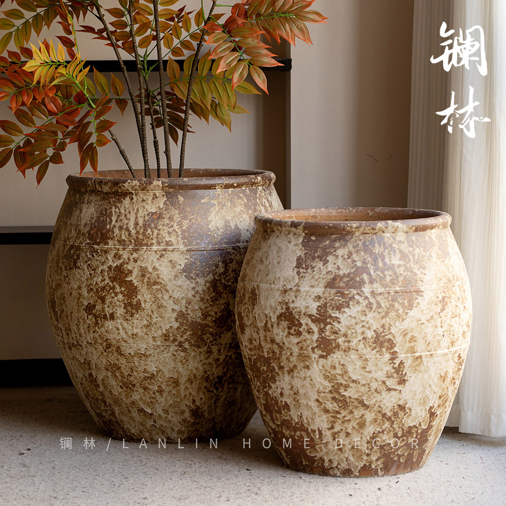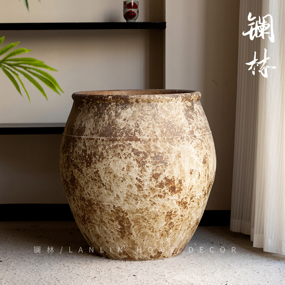 📚 新中式复古文艺粗陶大缸景德镇怀旧落地大陶罐侘寂风酒店民宿来仪