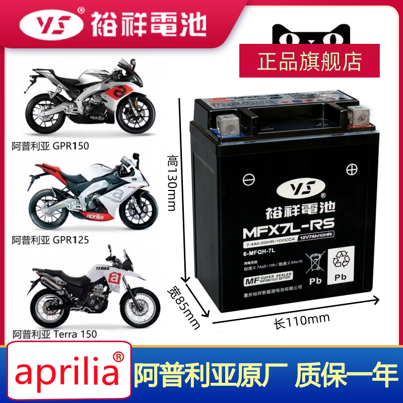 📚 裕祥摩托车电池阿普利亚咖啡GPR125 GPR150比亚乔X7电瓶12安电瓶
