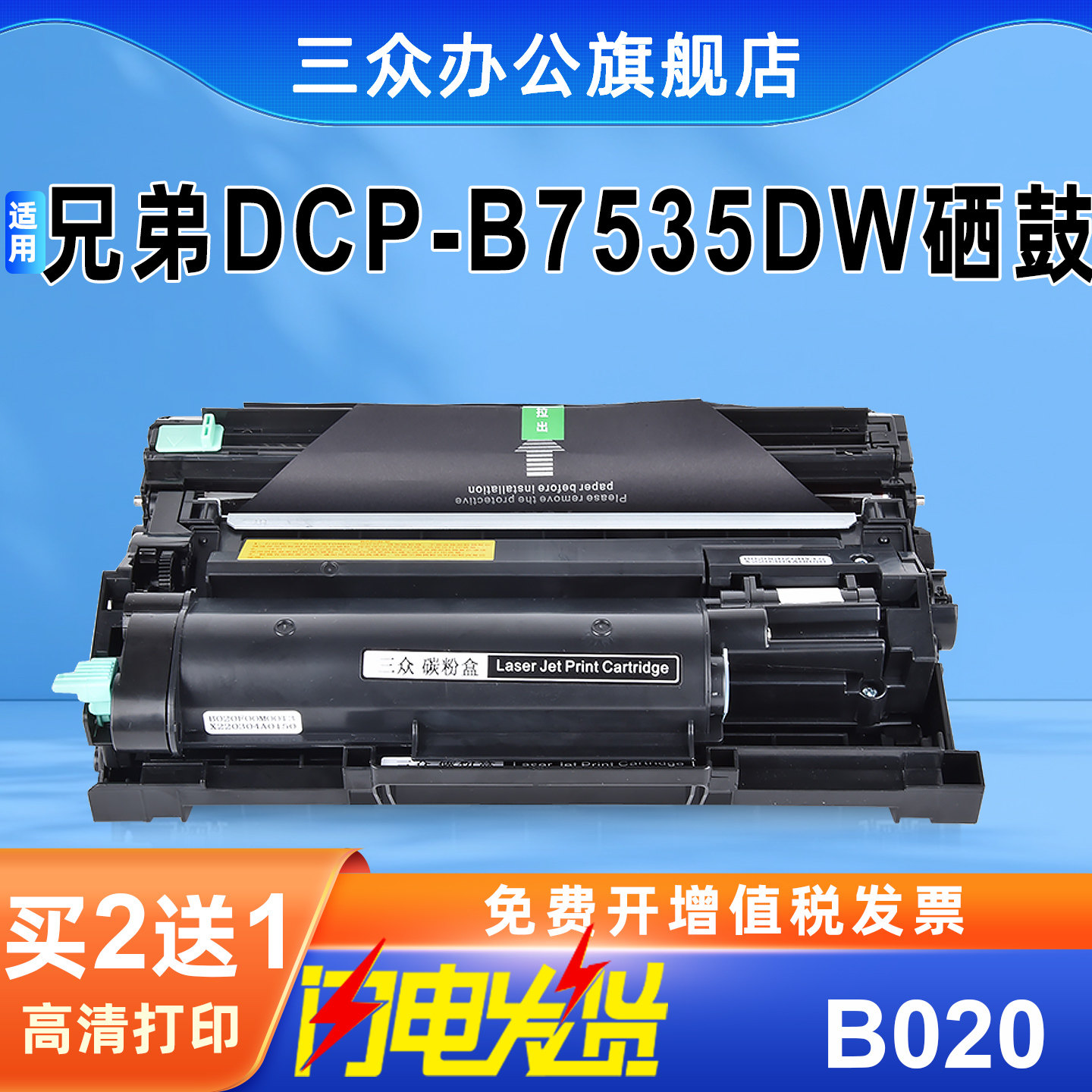 📚 【买2送1】三众适用兄弟7535dw粉盒7535dw硒鼓b7535dw打印机碳粉盒b020粉盒brother激光打印机TNB020硒鼓架