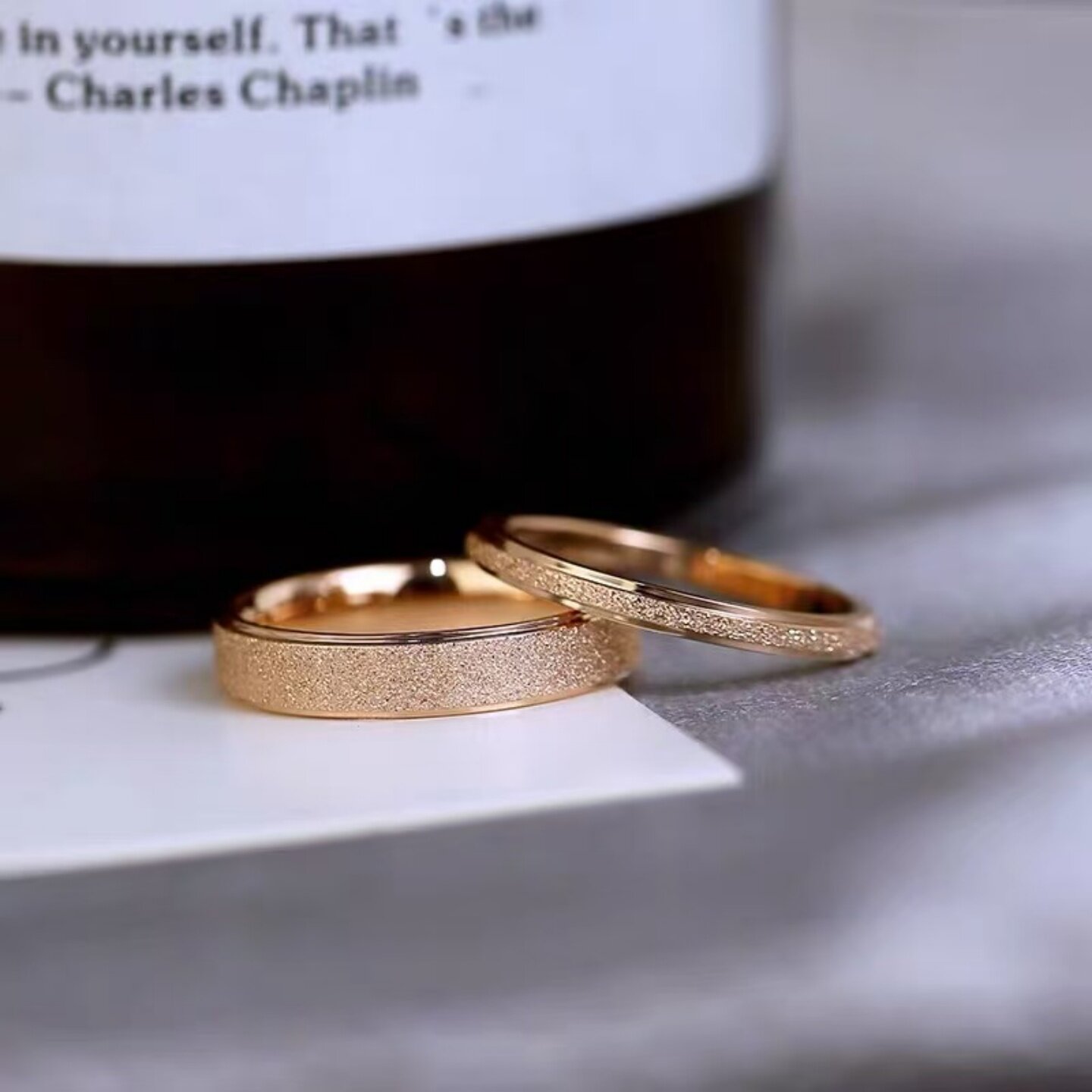 📚 I DO 18K金戒指男女对戒铂金指环磨砂素圈轻奢时尚简约素戒送对象