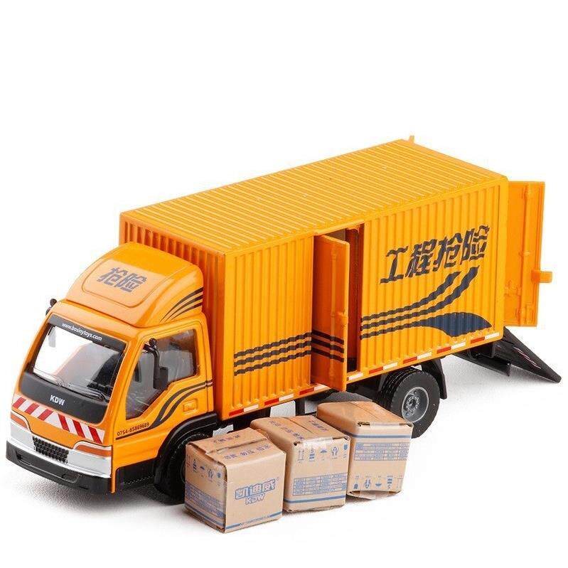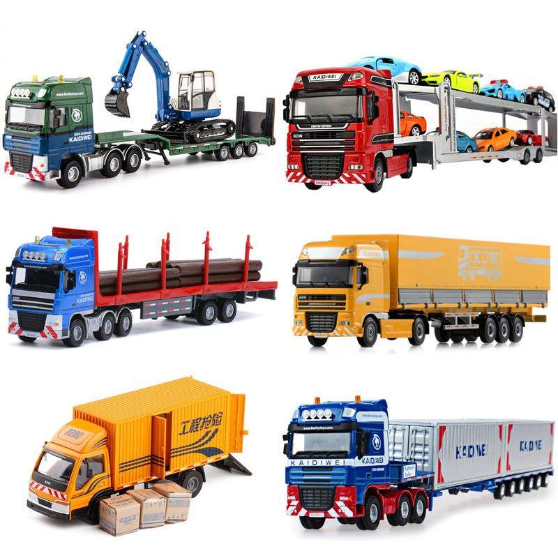 📚 凯迪威合金工程车公路运输车集装箱平板挂车双层车辆头蓬箱式车模