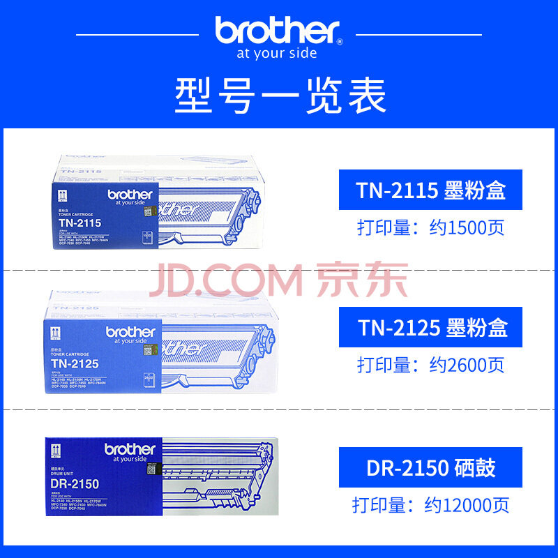 📚 原装兄弟DR2150硒鼓TN2115粉盒7030 7040 7340 7450 墨粉tn2125