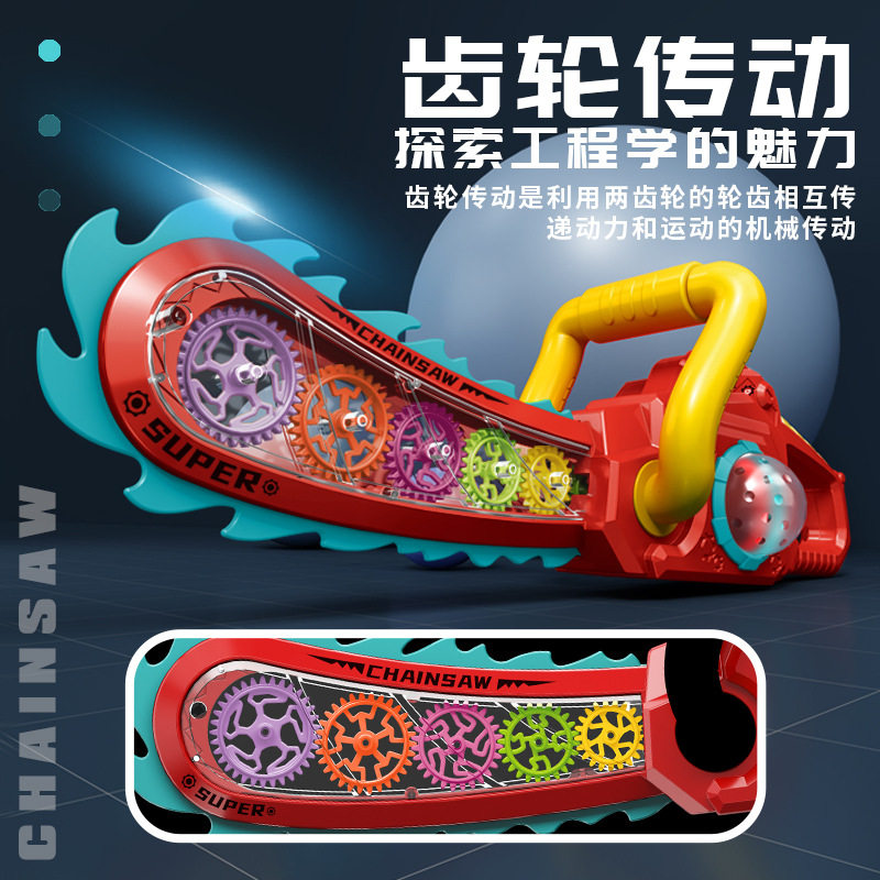 📚 光头强同款儿童卡通电动透明齿轮锯声光电锯发光玩具2男孩3伐木锯