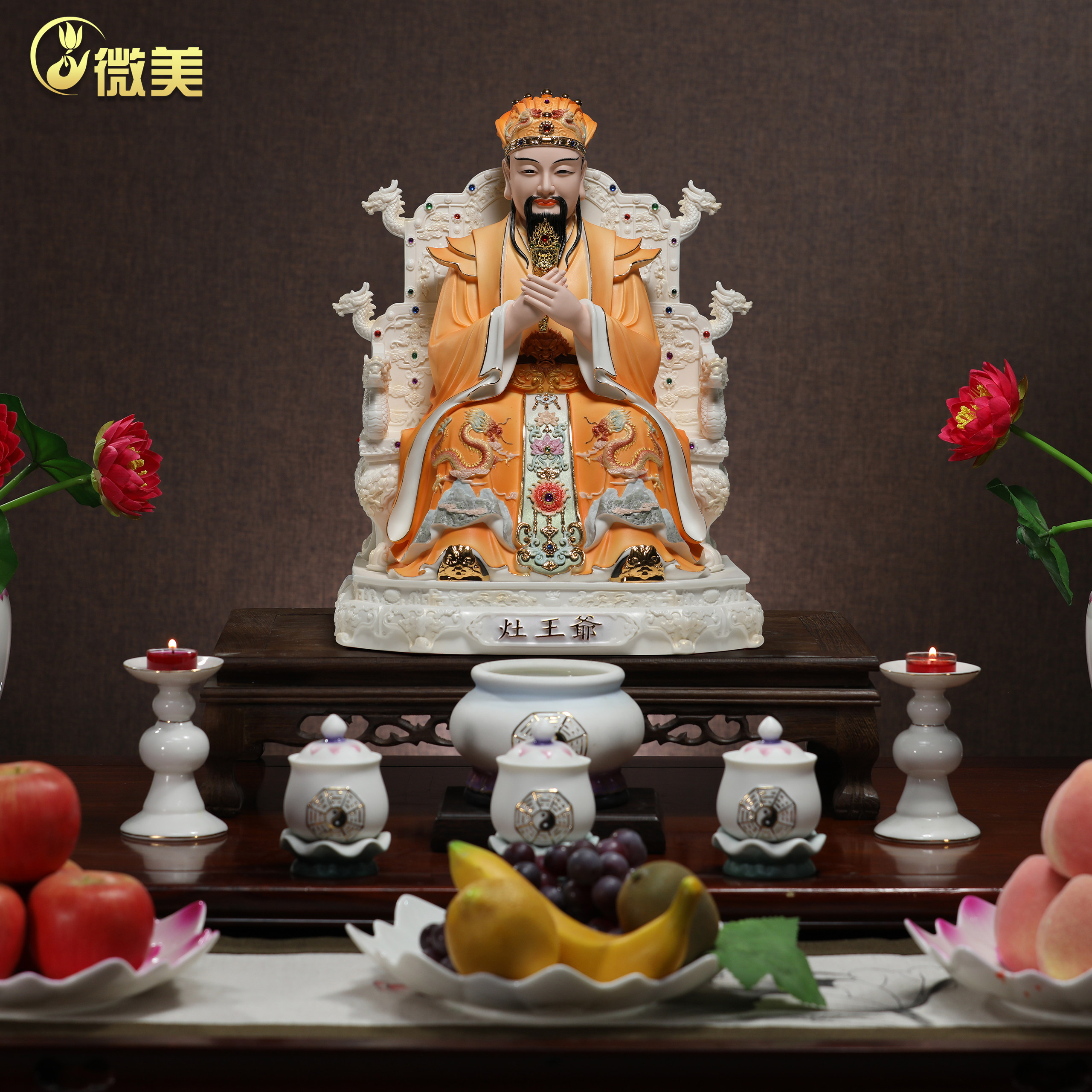 📚 微美陶瓷12至19寸灶王爷神像灶神司命祝融灶君厨房灶面供奉摆件