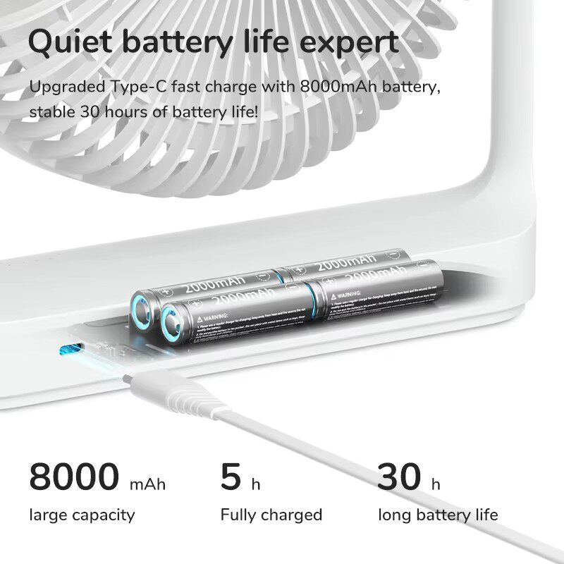 📚 JISULIFE Desktop Fan Whisper Quiet 30H Max USB Rechargeable