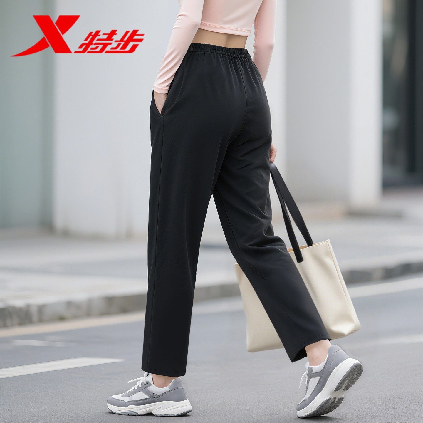 📚 特步直筒裤女裤长裤2025秋季冬季加绒针织休闲卫裤阔腿大码运动裤