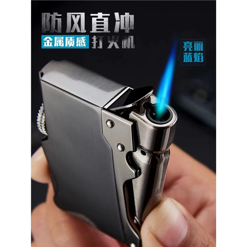 📚 打火机男友定制防风充气耐用潮创意直冲个性大刚金属炮送焦点蓝焰