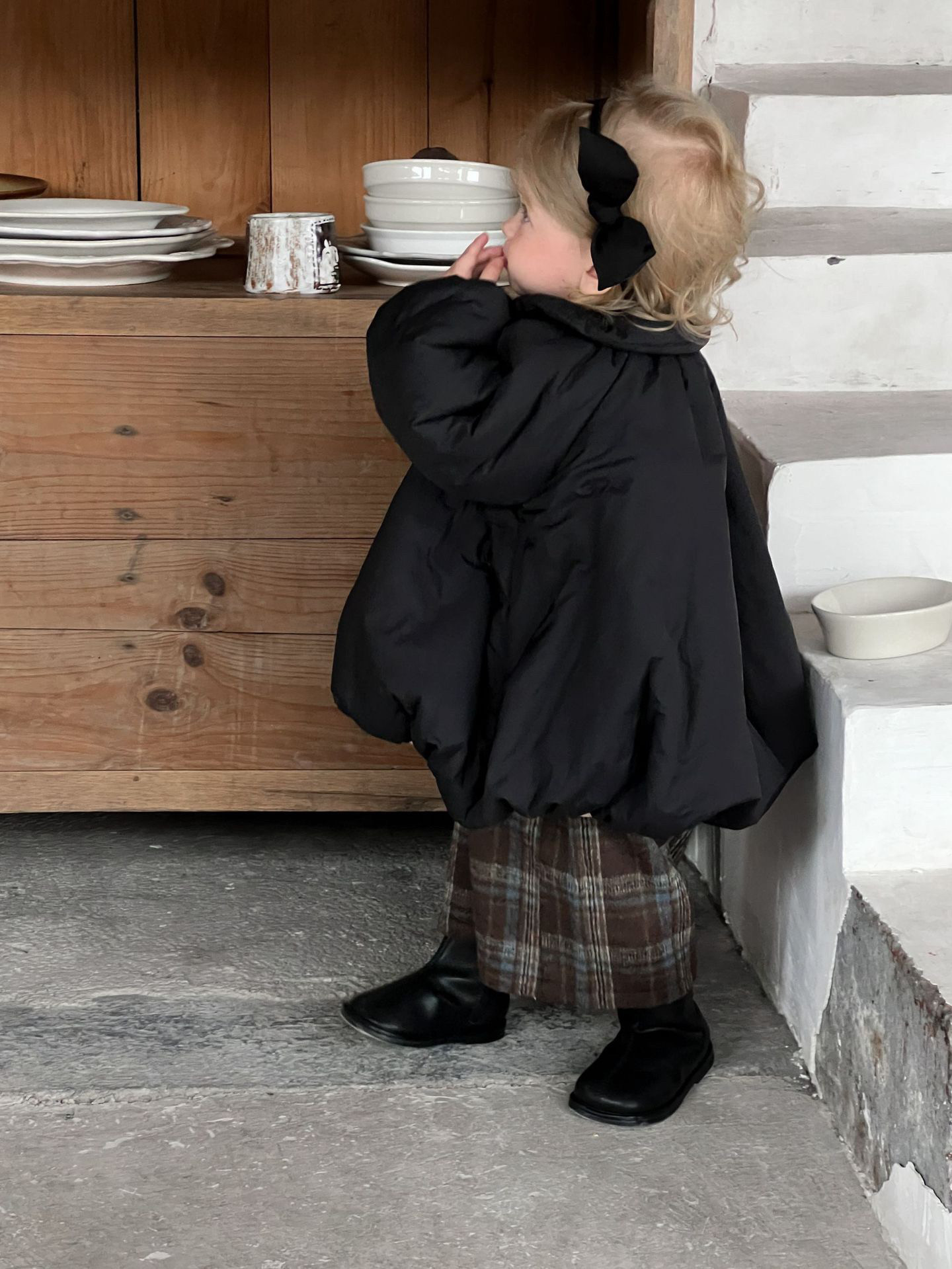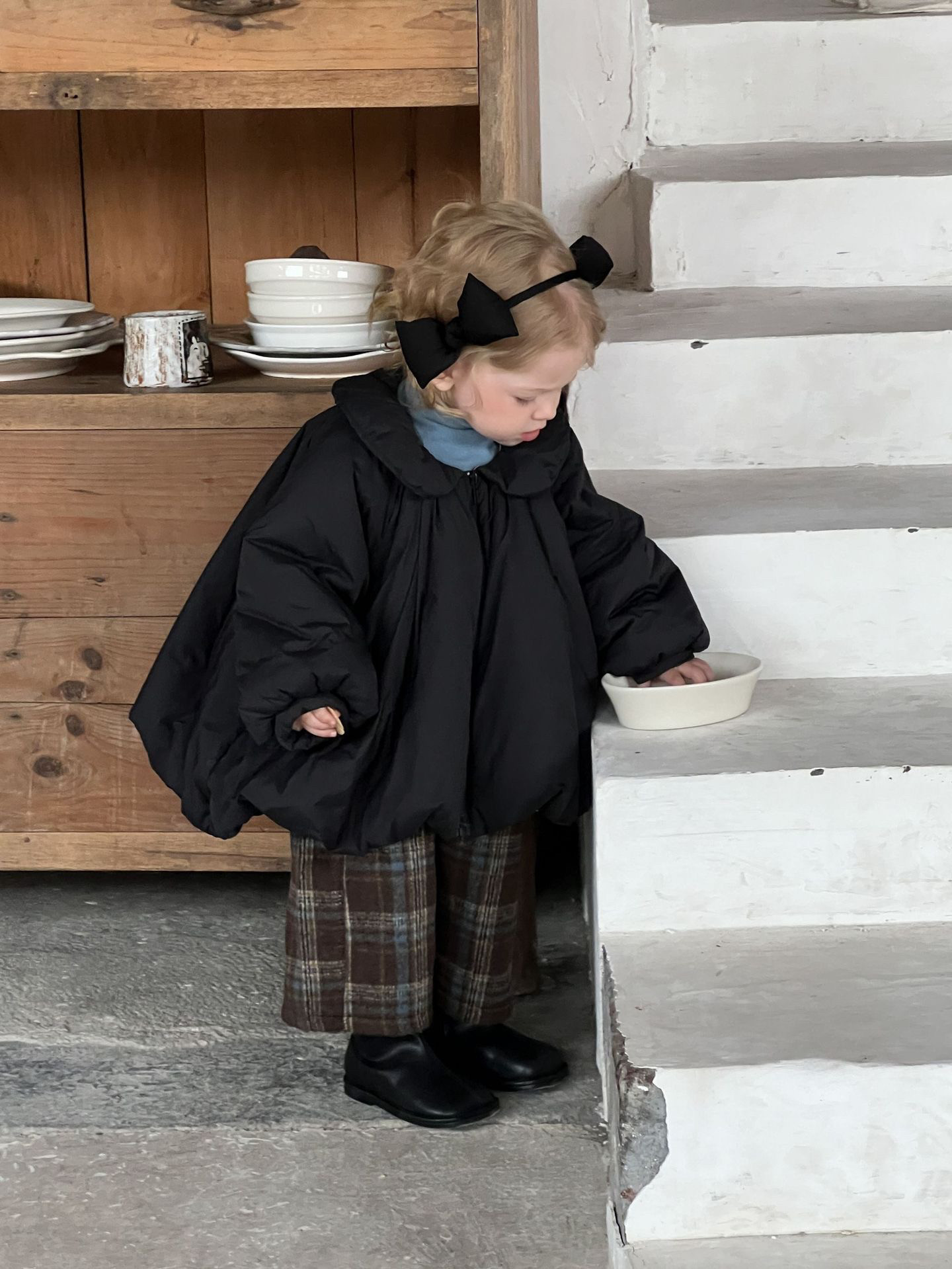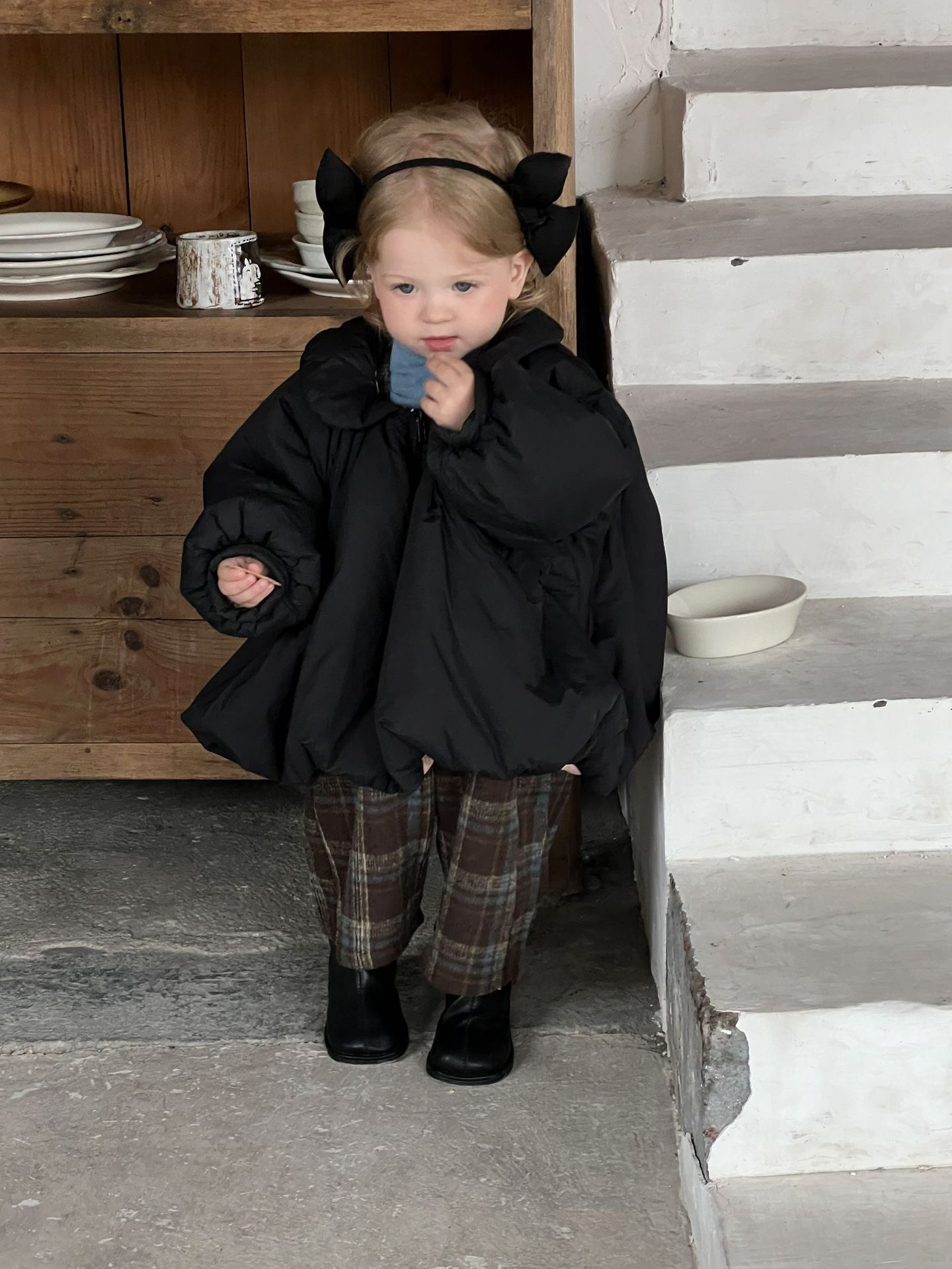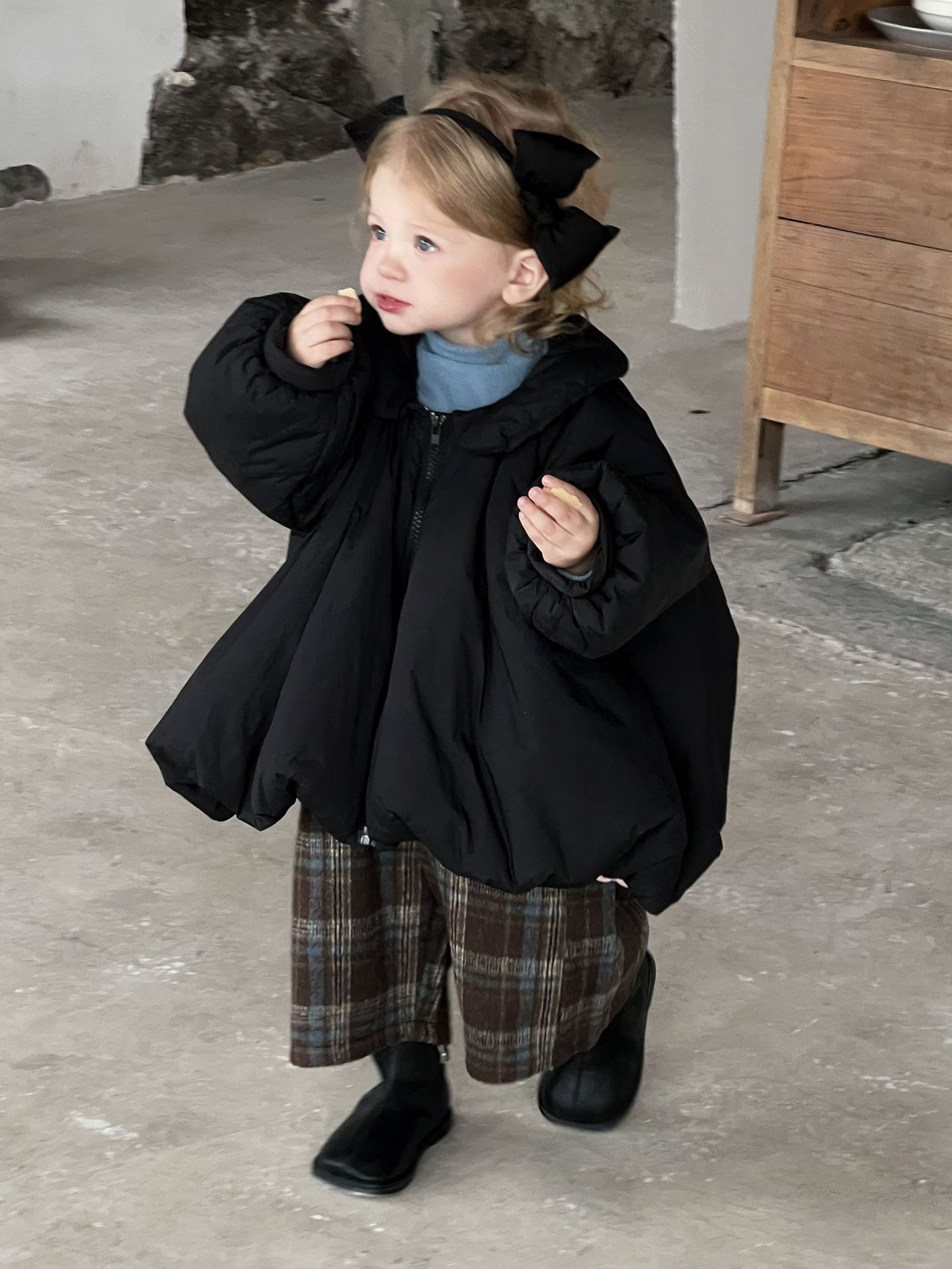 📚 Galakoko冬季黑色宽松棉服女宝洋气格子吊带裤针织莫代尔上衣套装