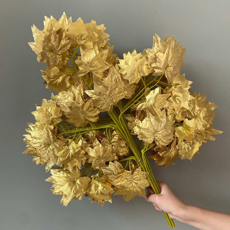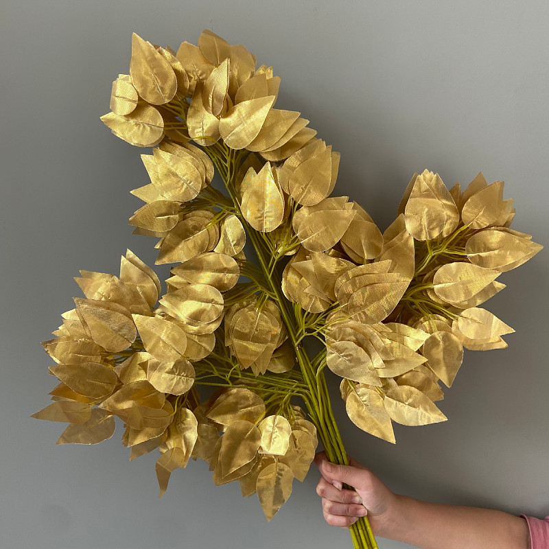 📚 仿真金色榕树叶银杏叶婚庆金色叶子假树枝婚礼装饰许愿发财树枫叶