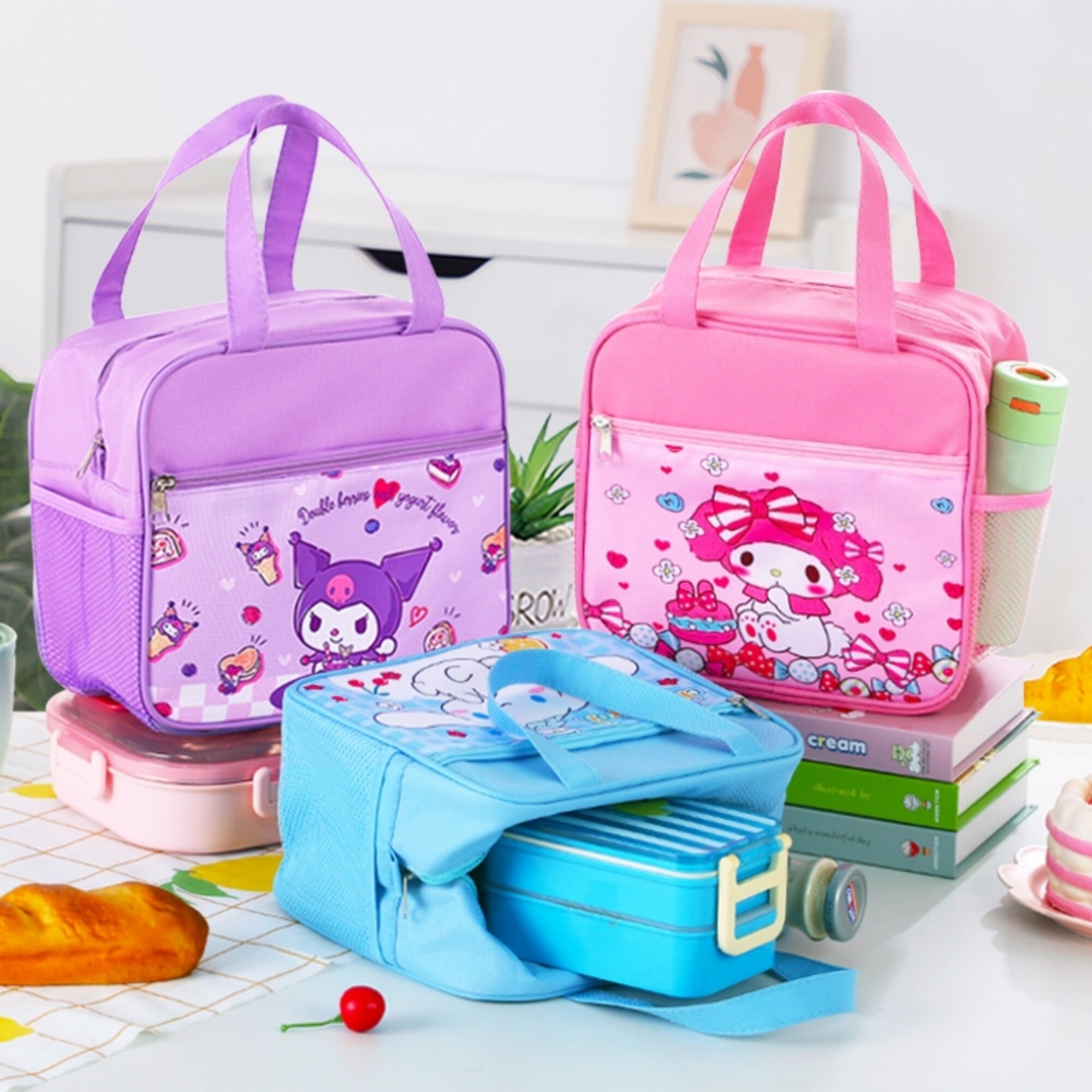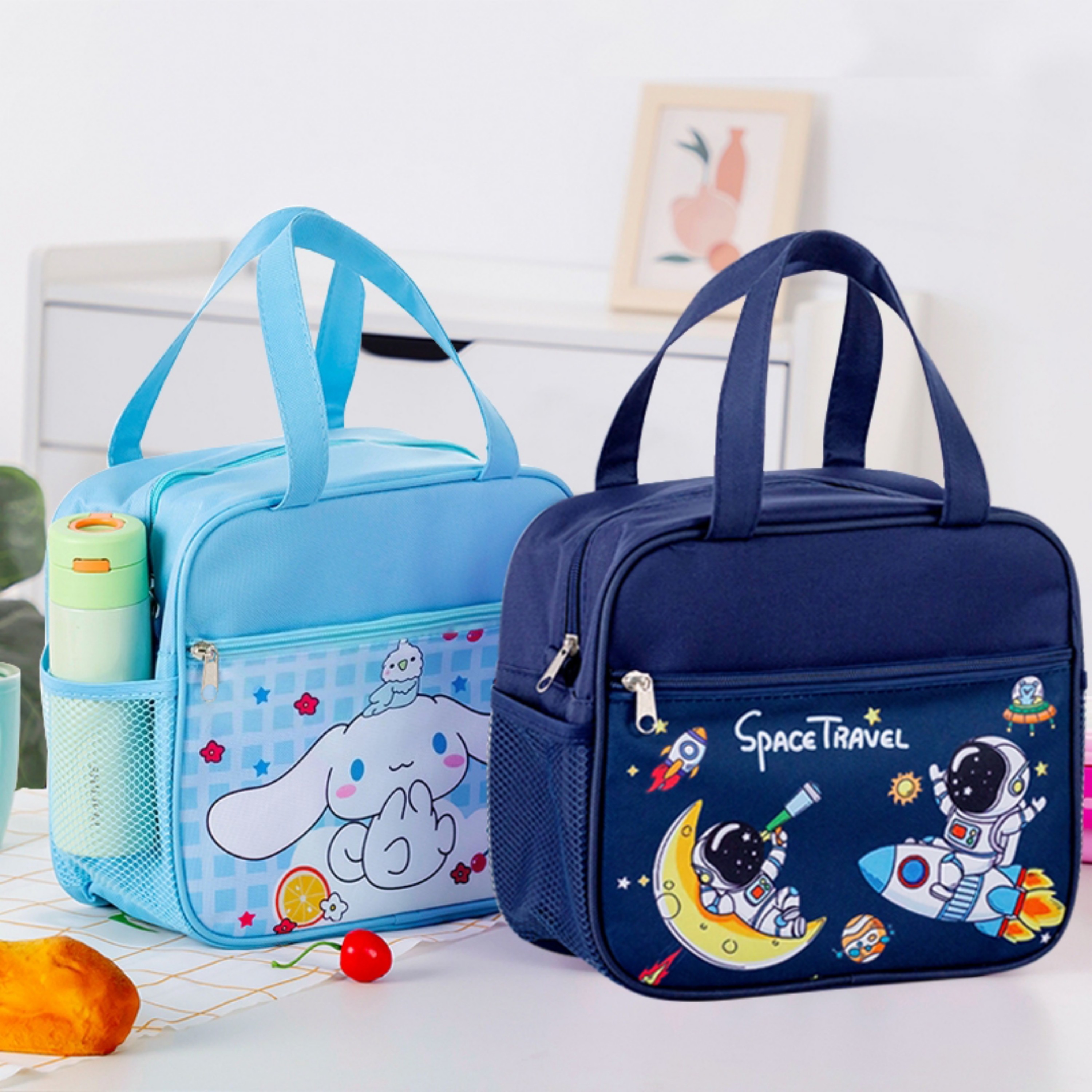 📚 可爱卡通保温带饭盒袋子儿童小学生专用防水大号午餐手提袋便当包