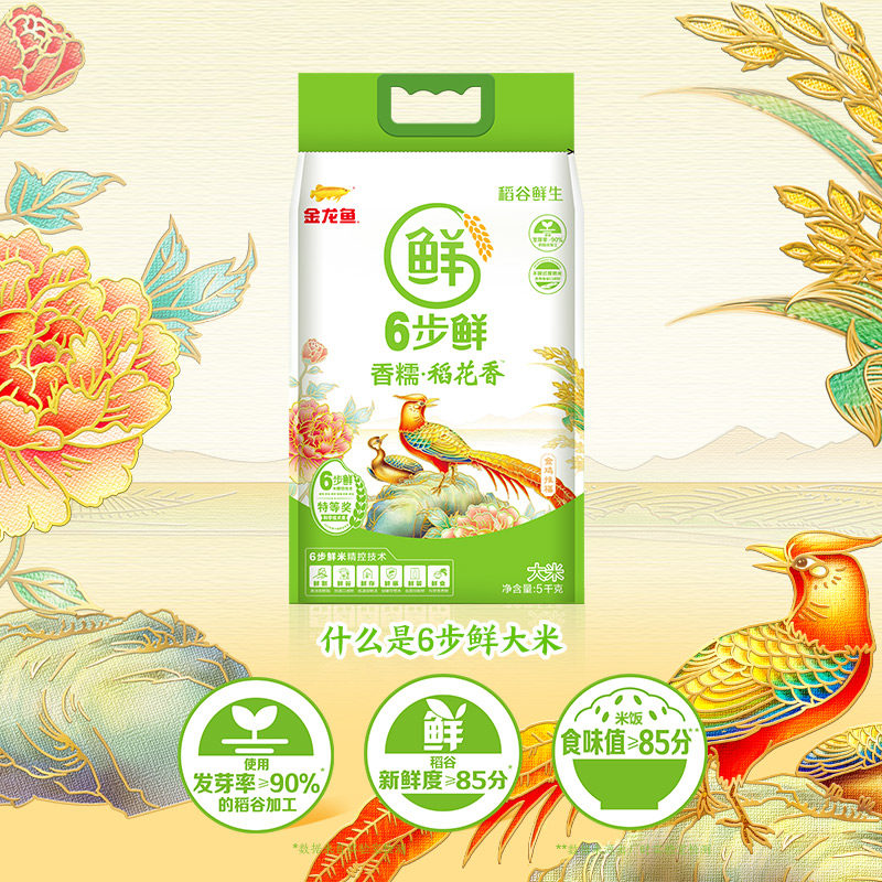 📚 金龙鱼6步鲜香糯稻花香5KG家用煮饭粳米香弹回甘新米大米稻花香米