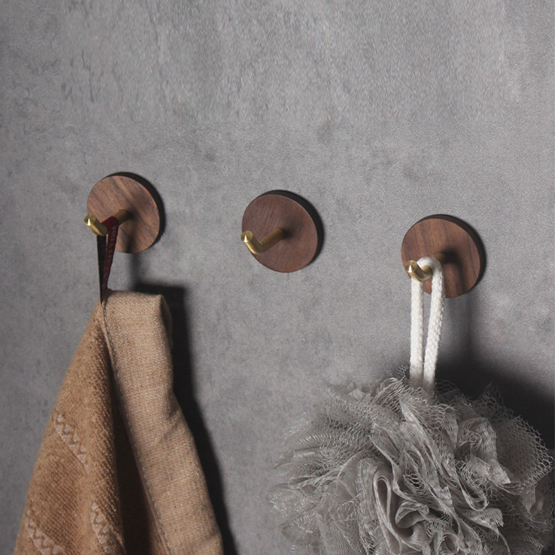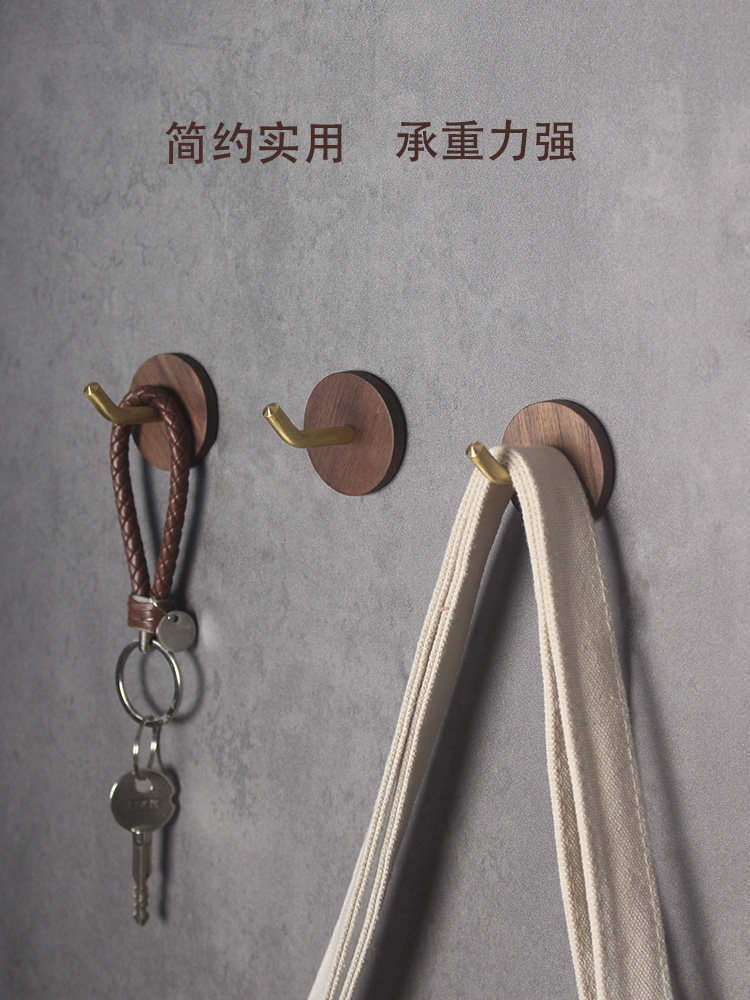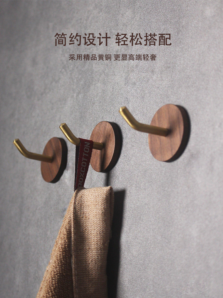 📚 黑胡桃实木挂钩强力粘胶免打孔进门玄关免钉衣柜轻奢鞋柜黄铜衣钩