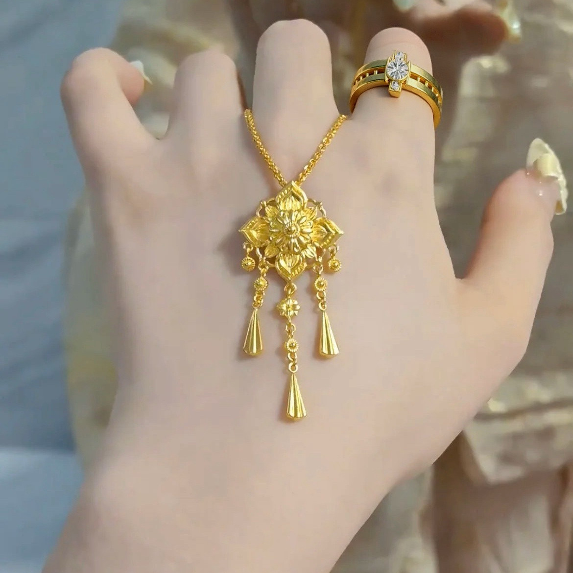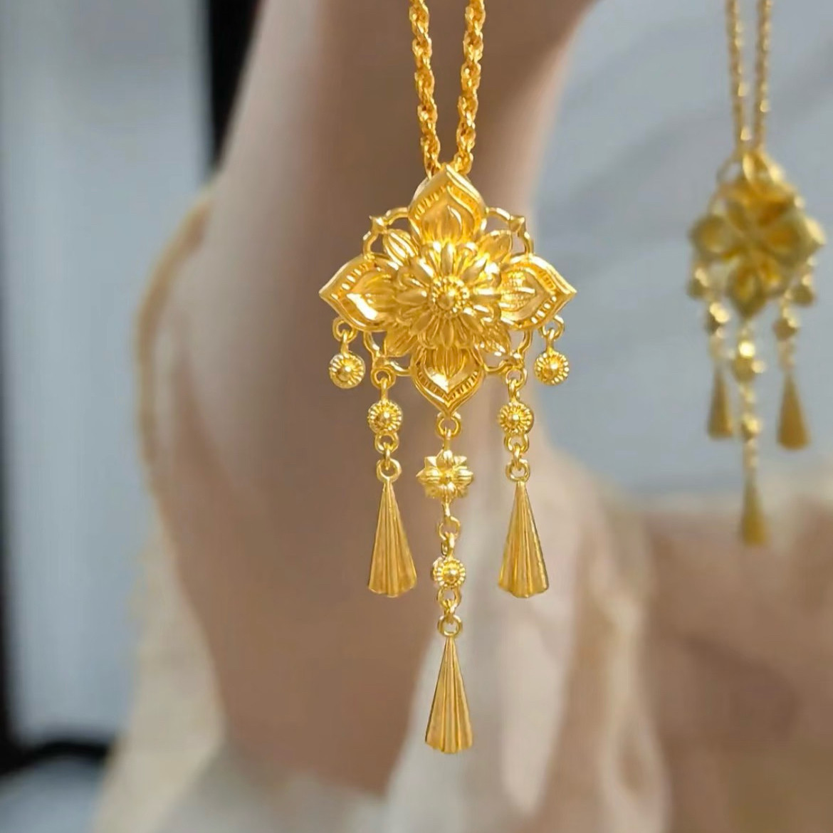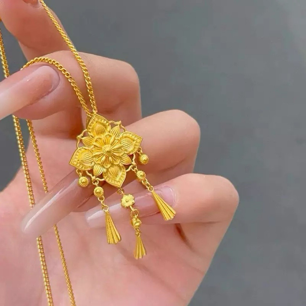 📚 宝相花流苏项链仿真黄金沙金吊坠古法新中式结婚轻奢高级感送女友