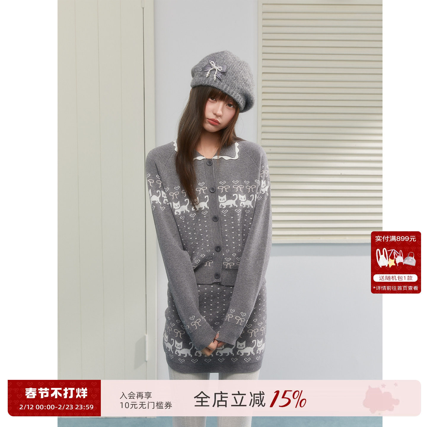 18¥ tG-#22>lD 8TJVUMuEq8b¥ https://m.tb.cn/h.7BUPNF7 ECHOSTA小猫爱心费尔岛提花复古针织开衫外套上衣包臀短裙套装 --------------------- 【原售价】134元 【现售价】134元。