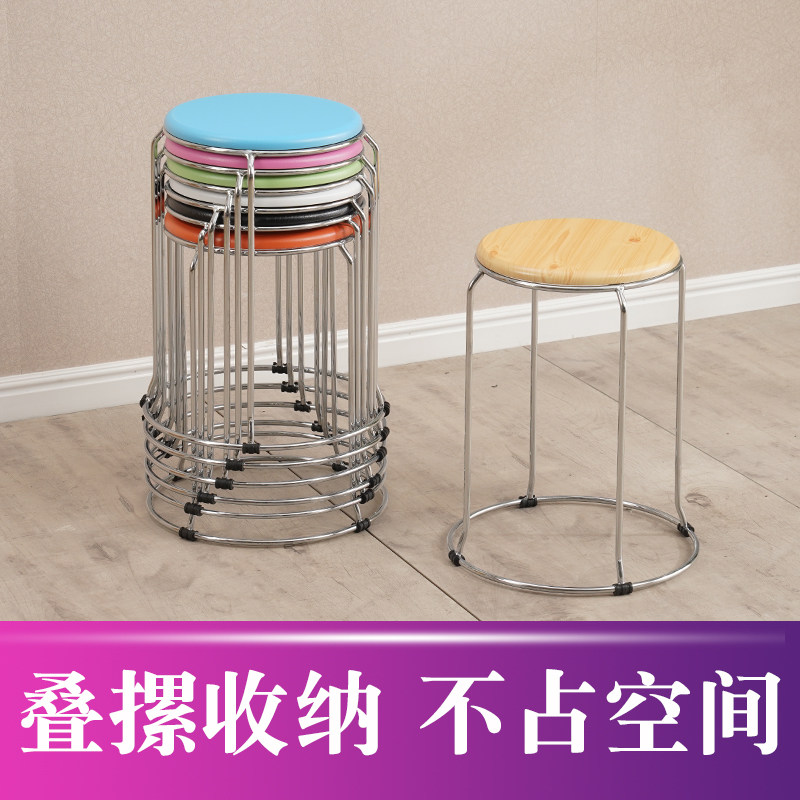 📚 凳子家用餐桌凳现代简约圆凳塑料凳套凳培训凳木面钢筋凳圆形凳子