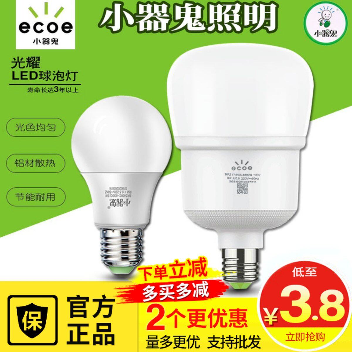📚 正品小器鬼节能LED灯泡新款宜美超亮家用球泡白光e27螺口防频闪