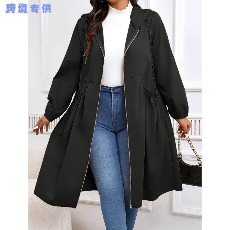 77¥ HU071 hRp5UmYif10¥ https://m.tb.cn/h.7D90gfQ Plus Size Women'S Plus Size Black Trench Coat Casual Zip Up --------------------- 【原售价】95.4元 【现售价】95.4元。