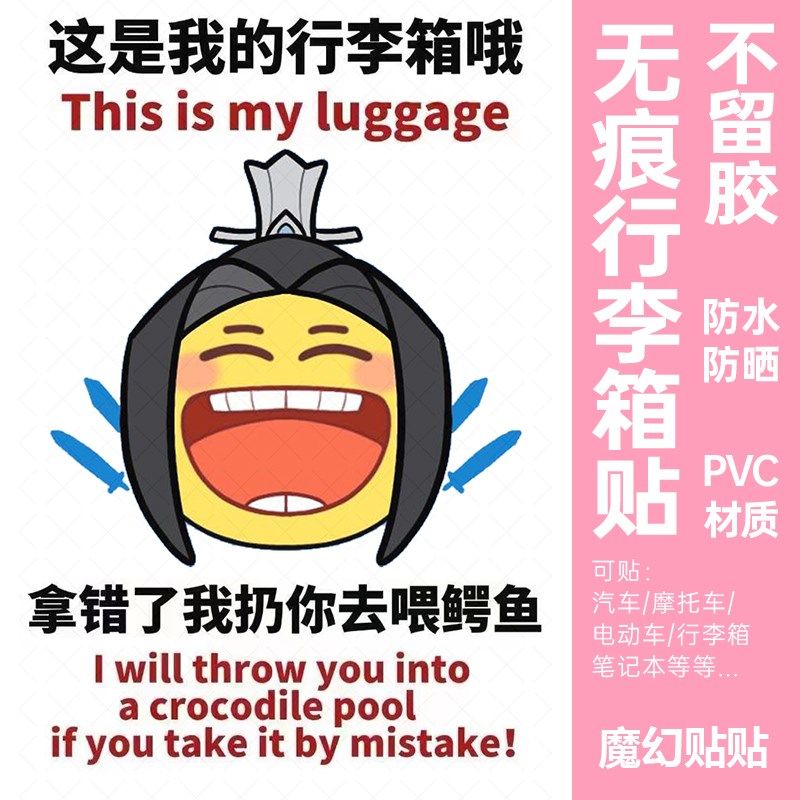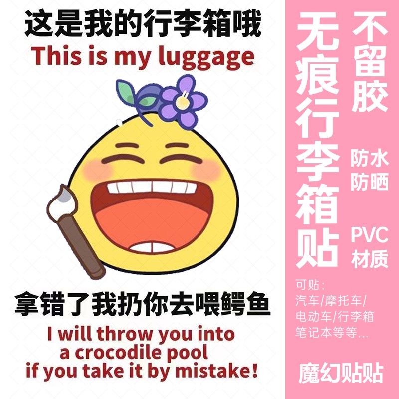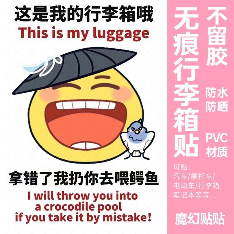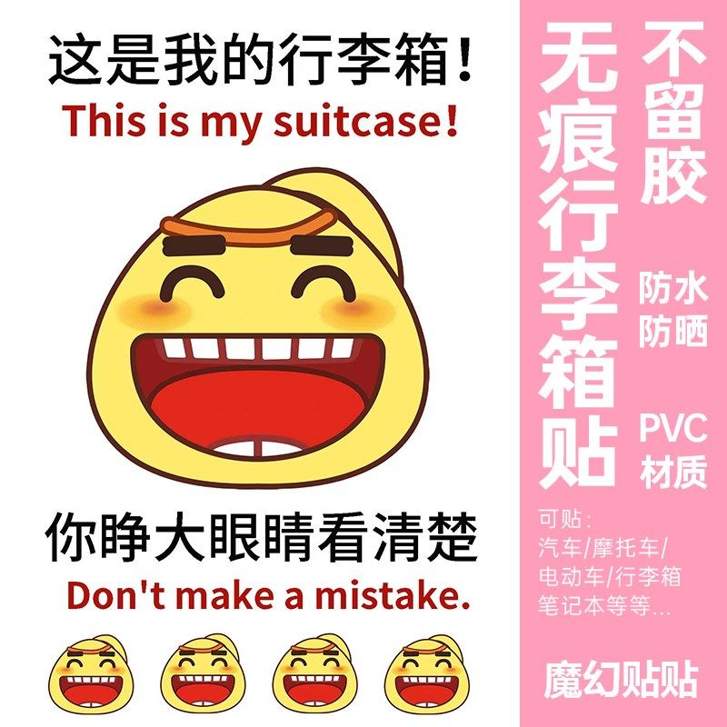 📚 黄鸡大笑行李箱贴纸防水不留胶大号显眼I包旅李箱标识牌防丢防拿