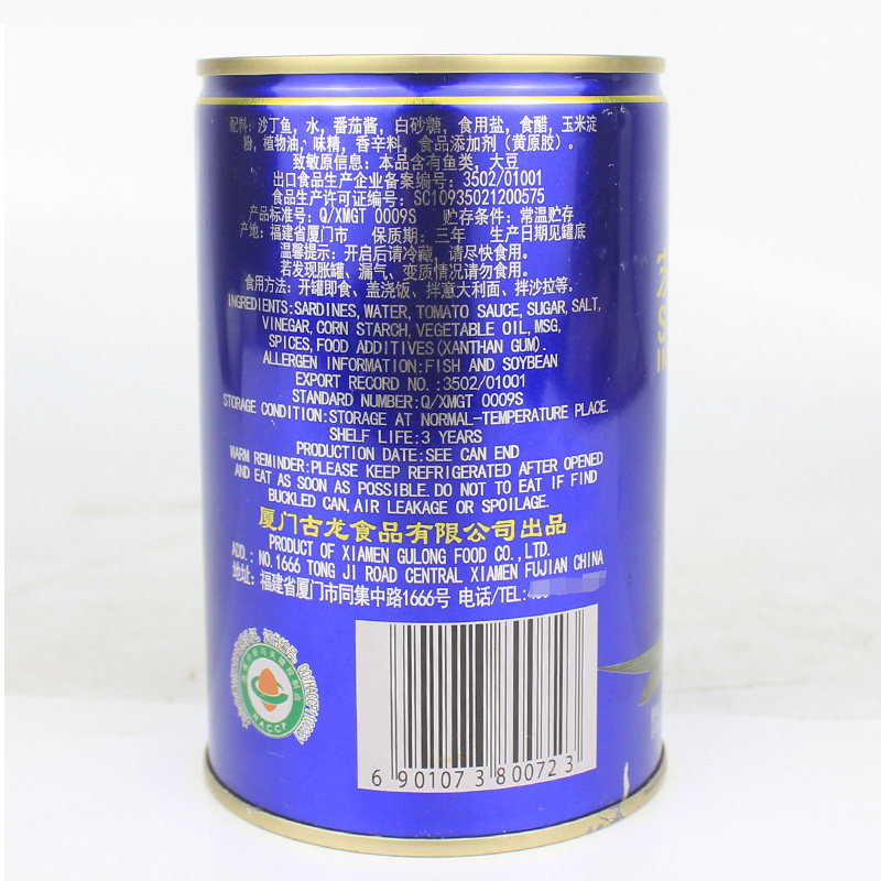 📚 古龙食品茄汁沙丁鱼罐头425g户外方便速食新鲜罐头肉类即食鱼罐头