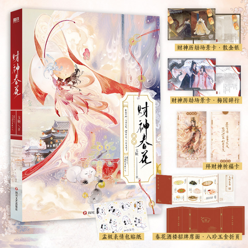 📚 财神春花 戈鞅著【赠财神历劫场景卡+拜财神祈福卡+八珍玉食折页+表情包贴纸】汴陵女财神长孙春花VS断妄司天官谈东樵青春文学正版